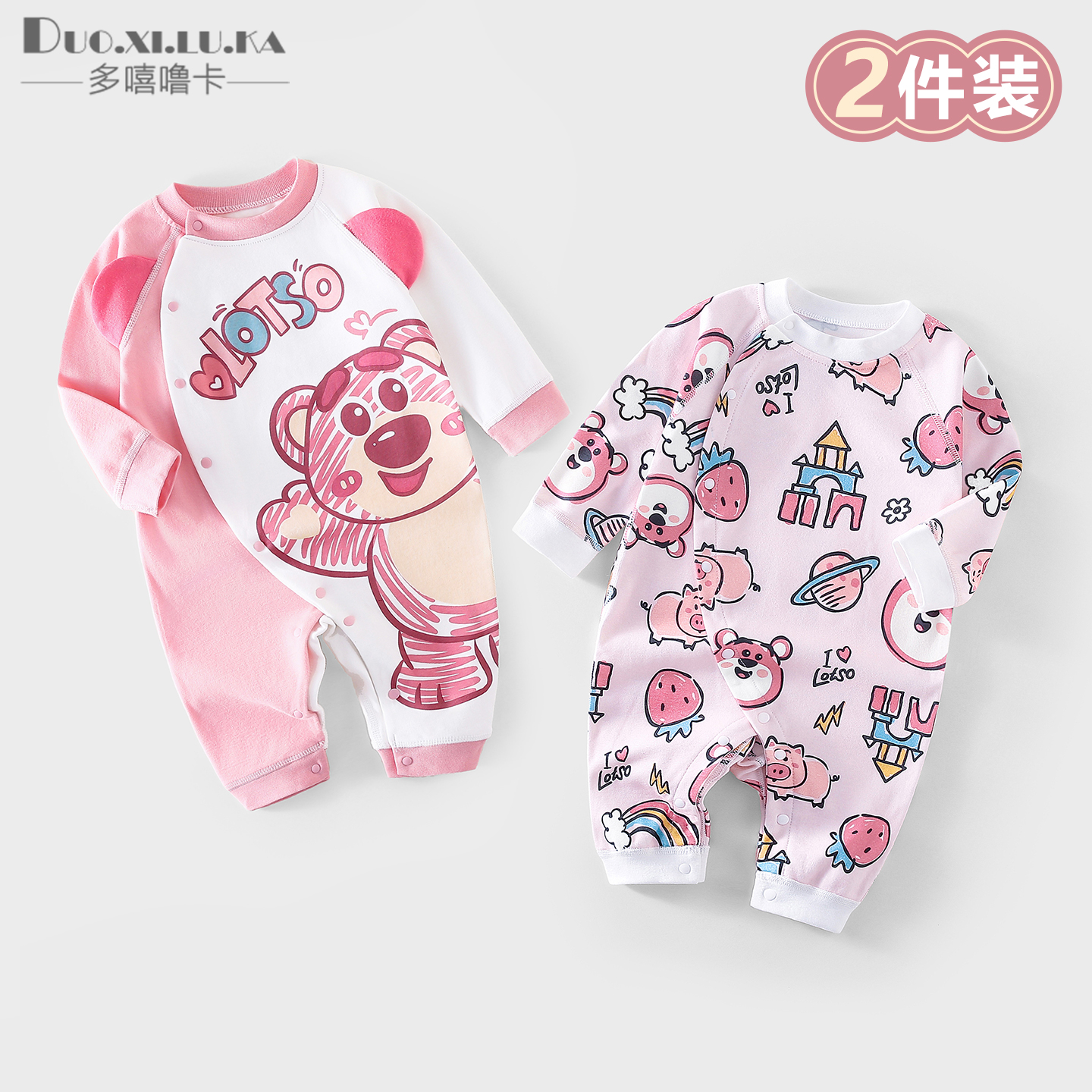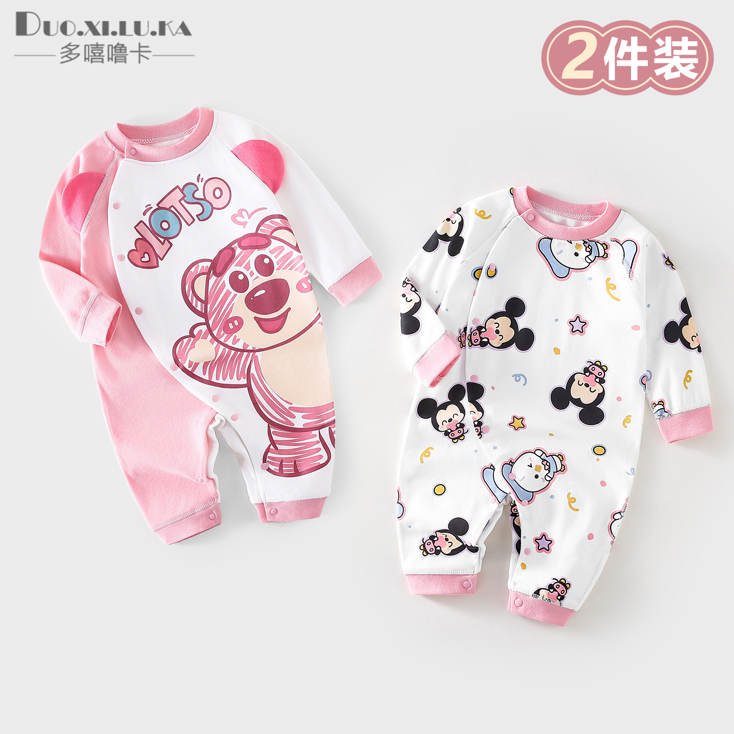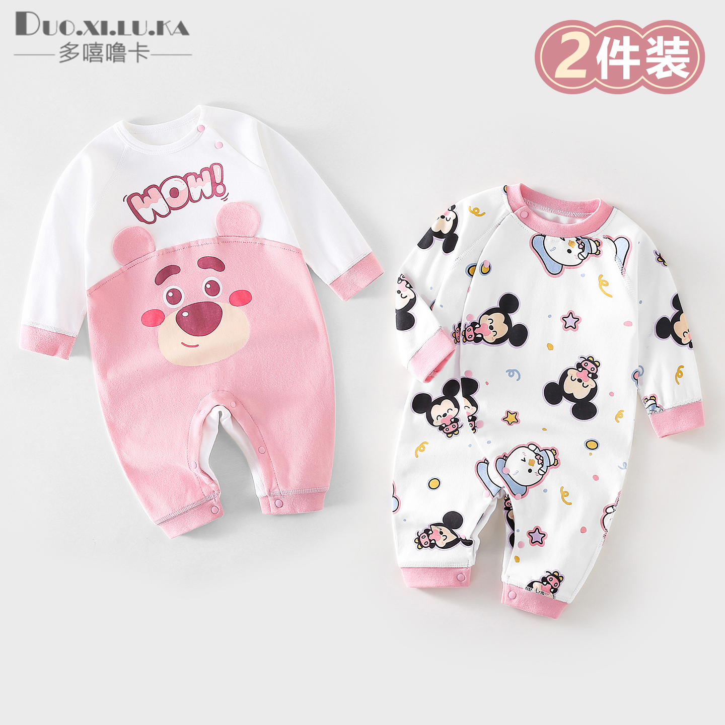 a类纯棉新生儿连身衣长袖 新款 哈衣爬服 婴幼儿连体衣春秋季 两件装