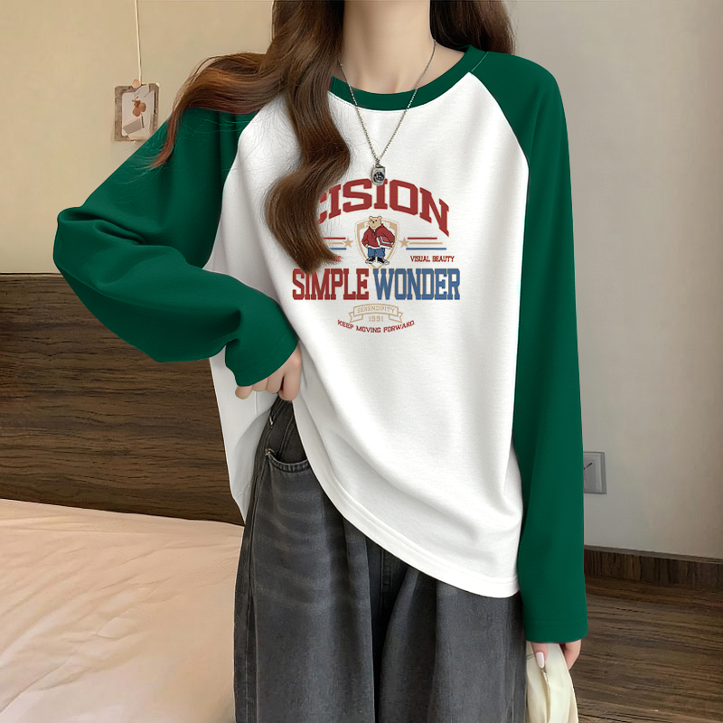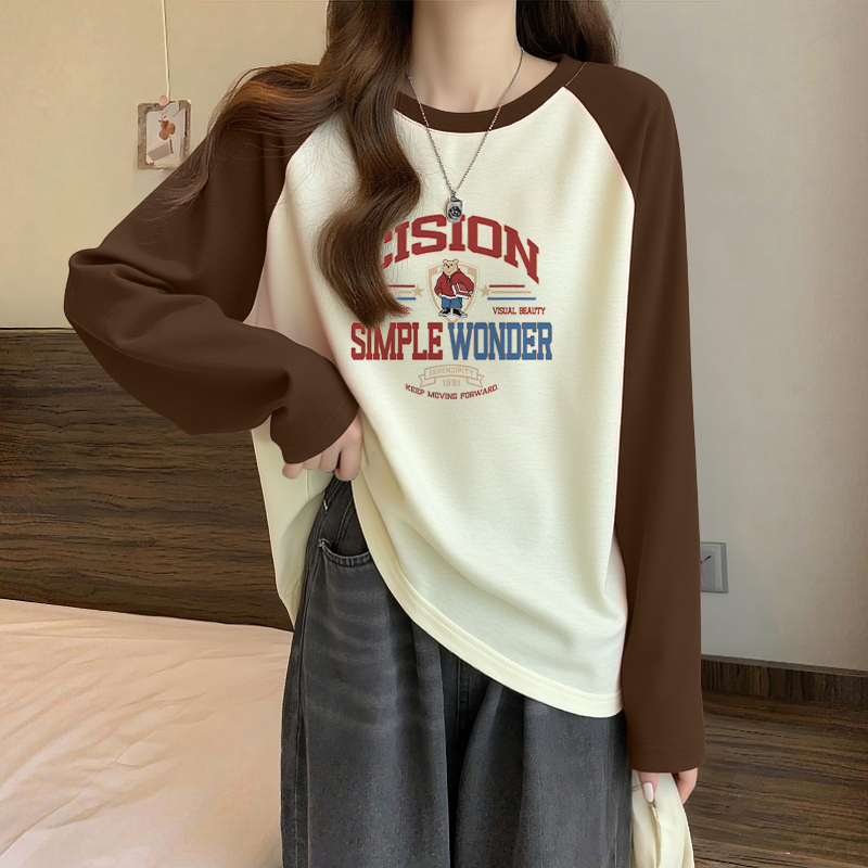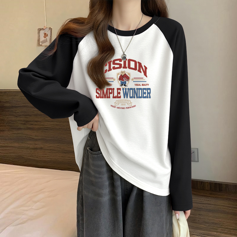 上衣 撞色内搭打底衫 NOW真维斯圆领红色长袖 t恤女2025春秋基础薄款