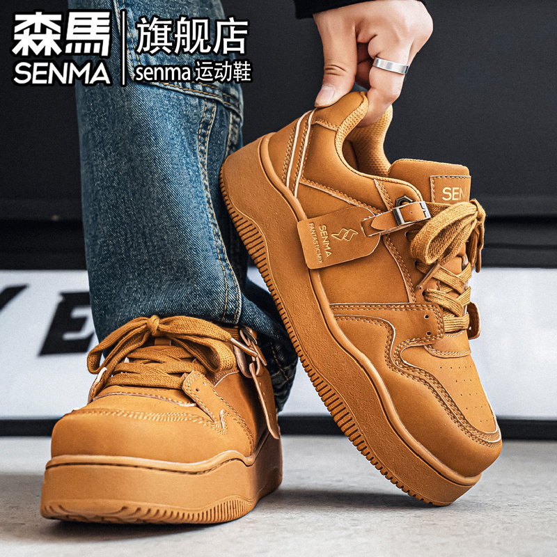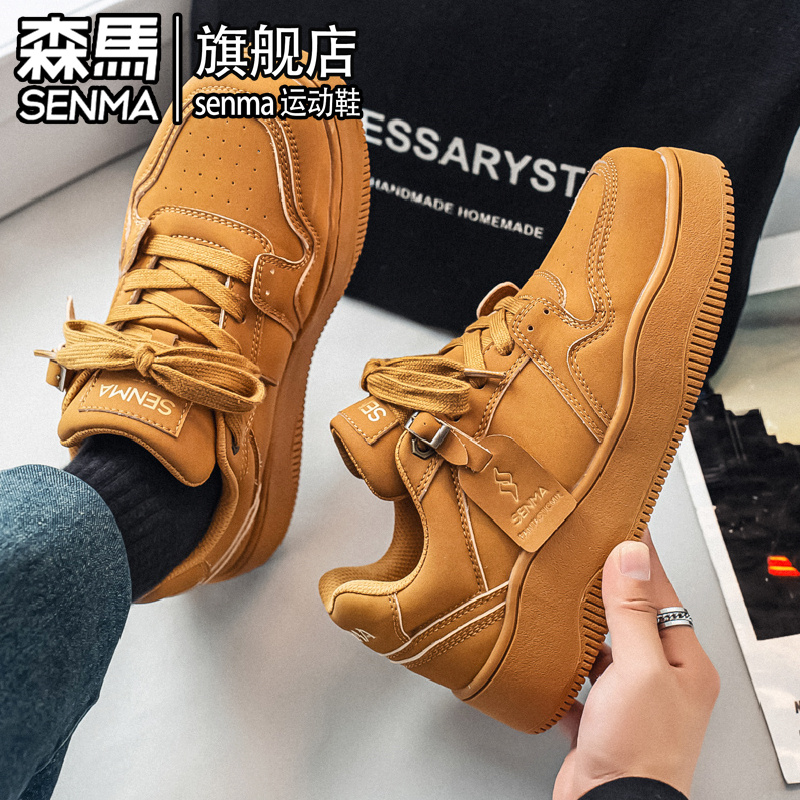 青少年运动厚底增高潮牌复古潮鞋 百搭休闲小麦色板鞋 秋季 森马男鞋