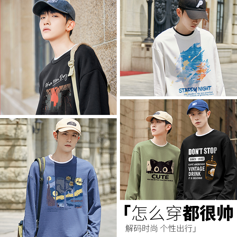 假两件秋装 春秋款 上衣男 初中生高中学生潮牌长袖 青少年卫衣男秋季