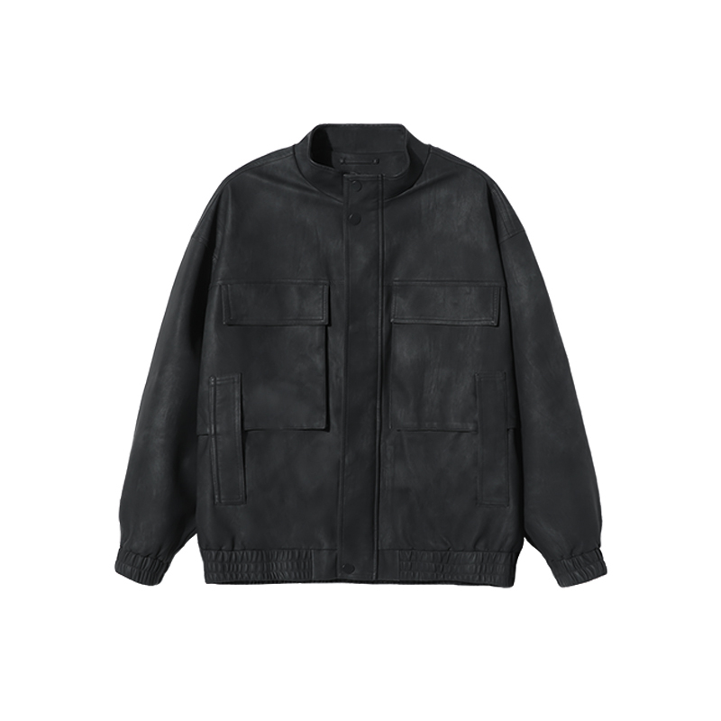 潮牌复古高级感机车大口袋痞帅夹克外套 皮衣男士 马克华菲秋季 新款