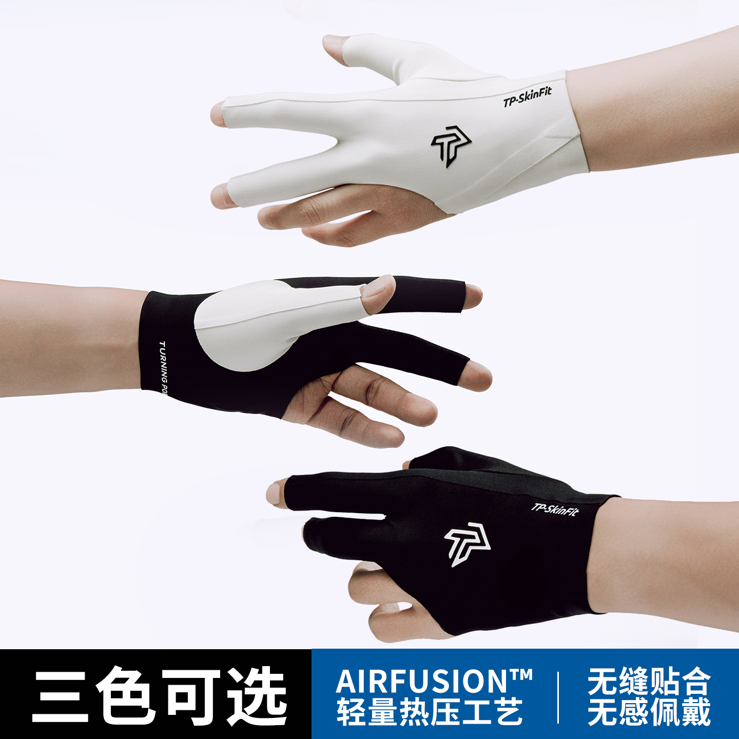联名TP台球无缝手套职业无感佩戴贴合吸汗速干三指男女露指手套