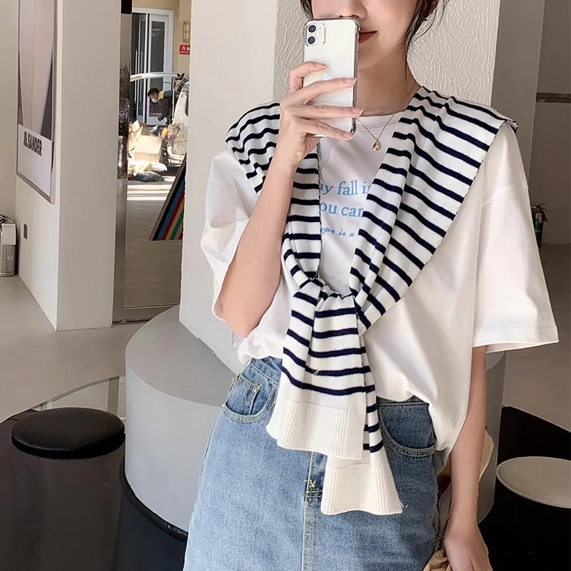 条纹外搭披肩女春秋百搭高级感假领子装 饰坎肩搭肩围巾护肩颈开衫