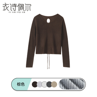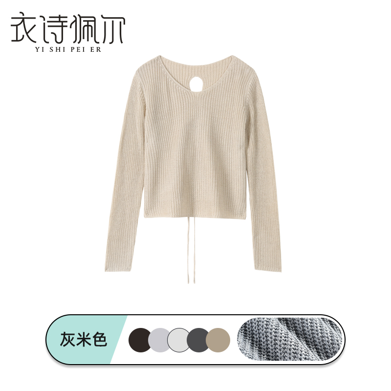 宽松圆领独特慵懒百搭女士上衣 女2025早秋新款 长袖 镂空针织衫