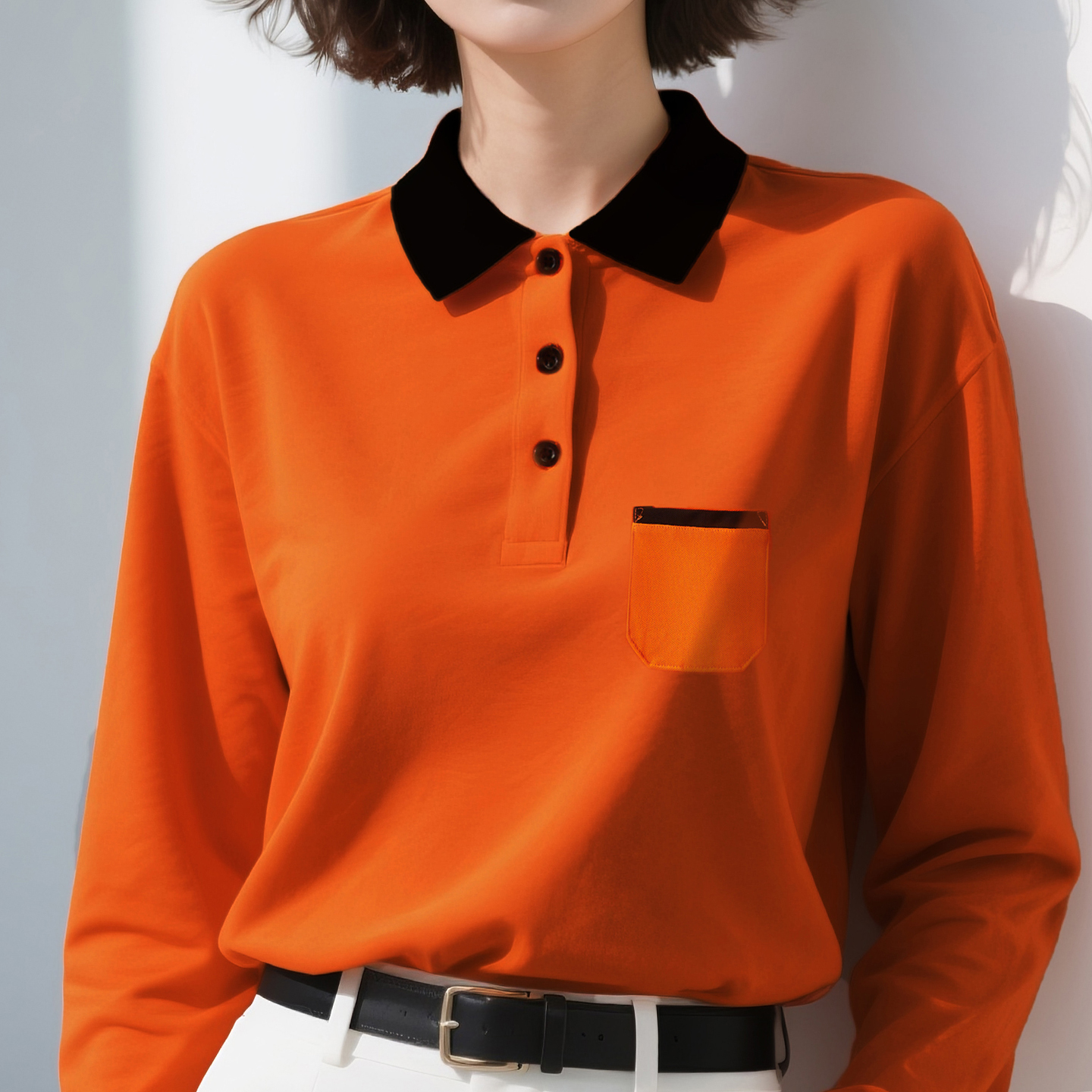 T恤打底衫 春秋季 女士长袖 大码 宽松翻领洋气Polo中年妈妈上衣 新款