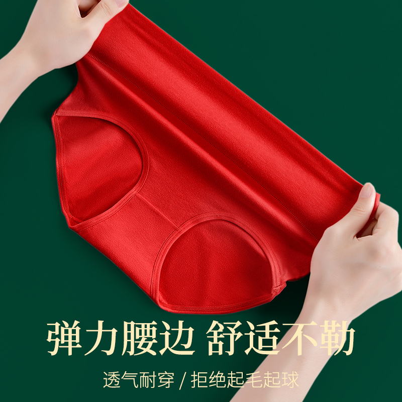 衩大码 大红色三角裤 透气送礼物抗菌 本命年高腰收腹裤 纯棉女士内裤
