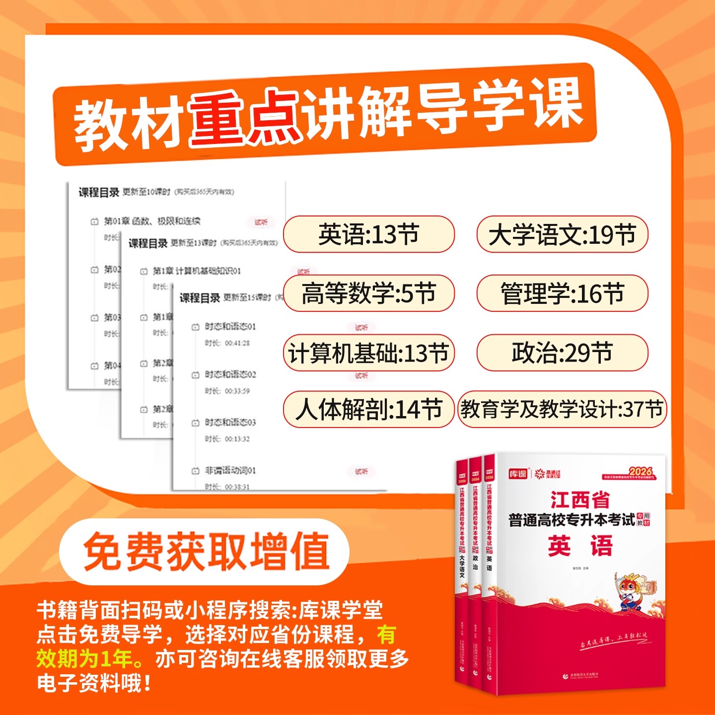 库课江西专升本2026统招专升本考试教材历年真题卷必刷2000题复习资料题库英语政治计算机基础高等数学大学语文管理学经济基础2025