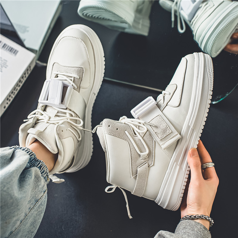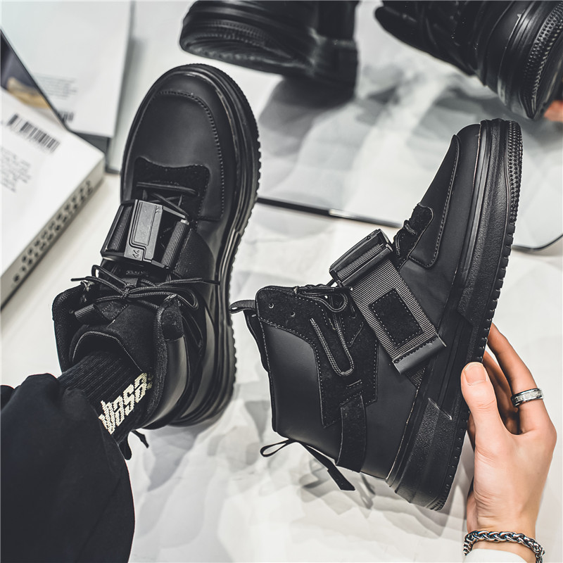 青少年厚底增高运动休闲潮鞋 潮流百搭高级感皮面板鞋 秋季 高帮男鞋