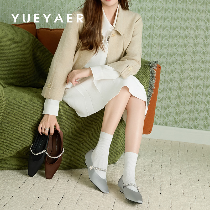 气质尖头单鞋 法式 女晚晚风低跟配裙子 水钻玛丽珍鞋 月芽儿2025新款