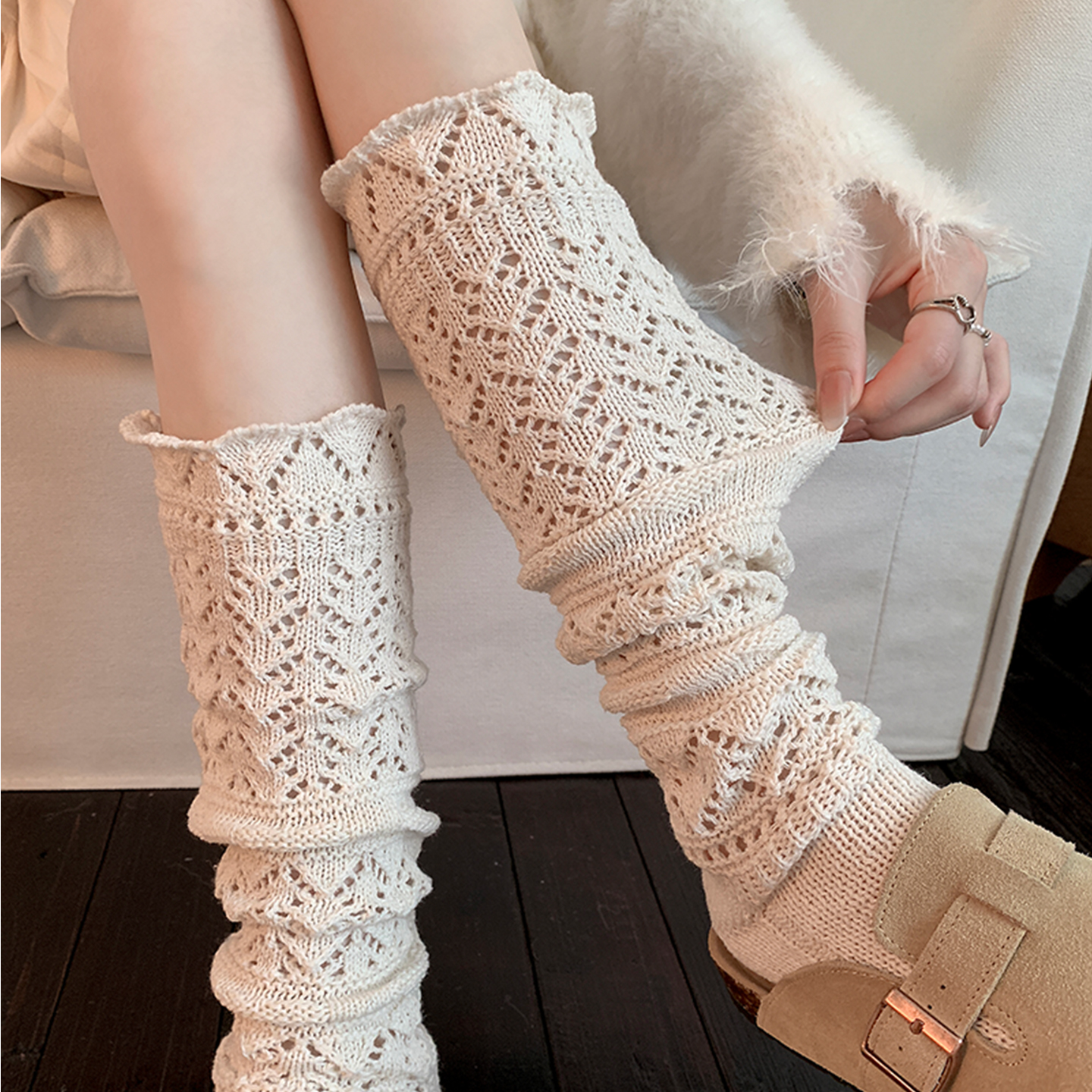 韦雪同款 羊毛小腿袜子女配靴子秋冬保暖针织毛线长筒袜堆堆袜中筒