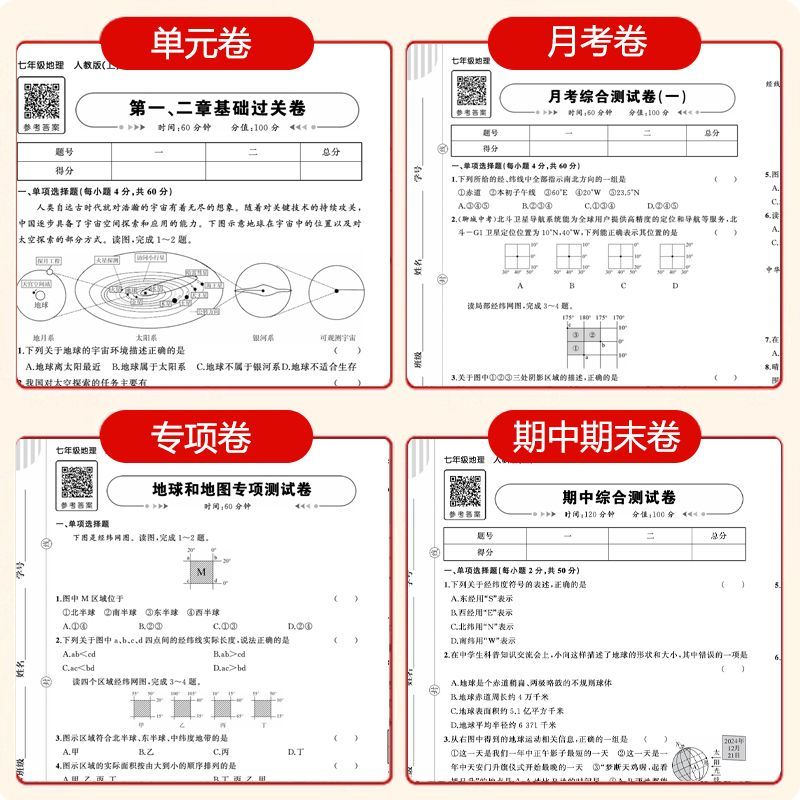 2025人教版 月考期中末专项训练真题 初中同步测试七年级上册下册试卷全套语文数学英语历史生物地理政治教材初中初一同步尖子生单元