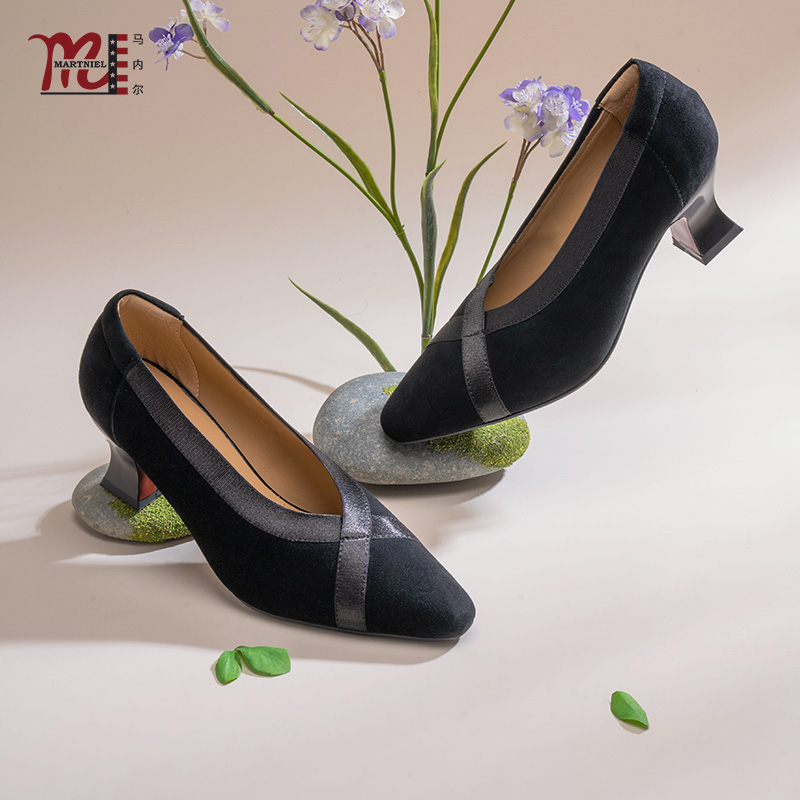 女气质高级不累脚尖头黑色单鞋 高跟鞋 G251141 新款 马内尔2025秋季