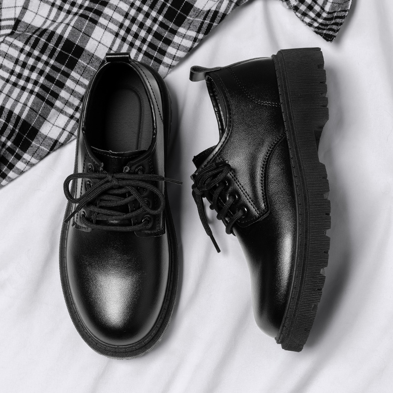 商务休闲上班通勤结婚增高黑色大圆头厚底德比鞋 正装 男款 回力皮鞋