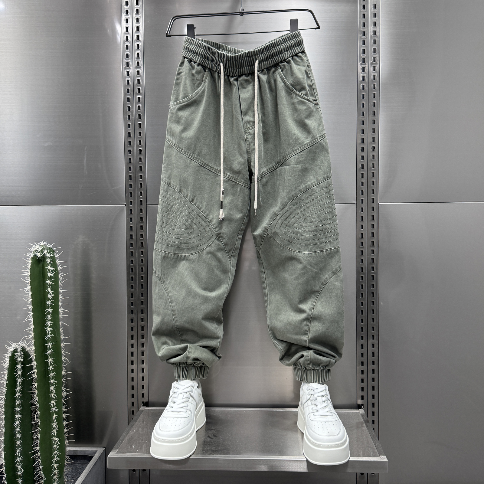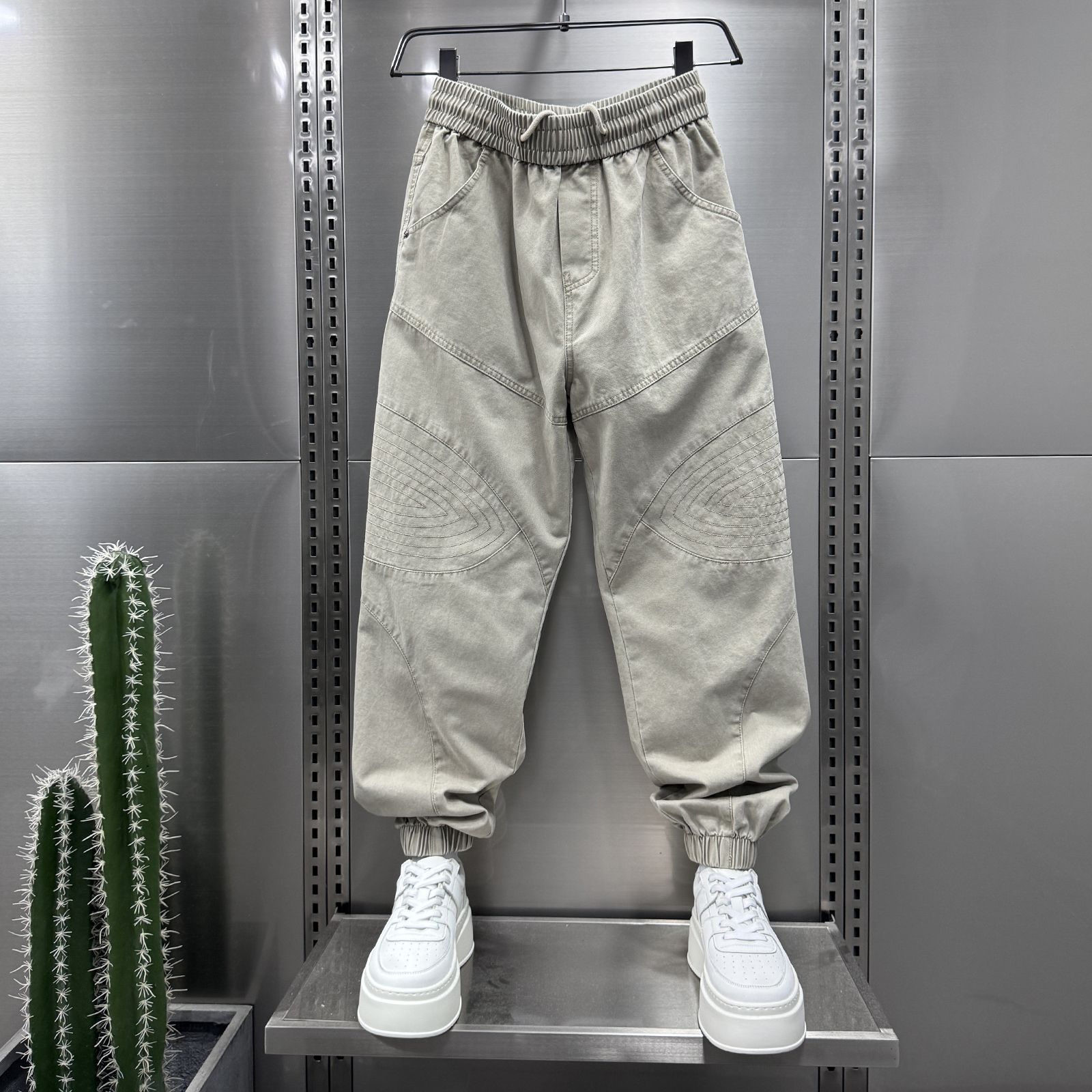 男士 2025秋季 时尚 美式 裤 拼接设计休闲哈伦裤 宽松痞帅束脚工装 个性