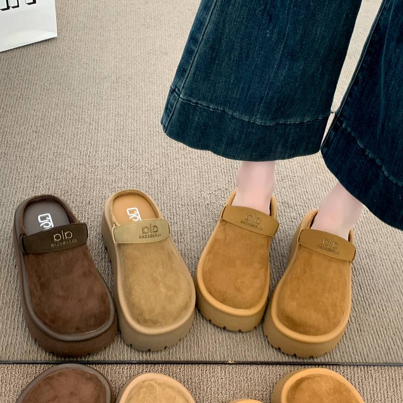 张凌赫同款 厚底增高可外穿预 百丽厚岛吐司2代包头冬加毛勃肯拖鞋