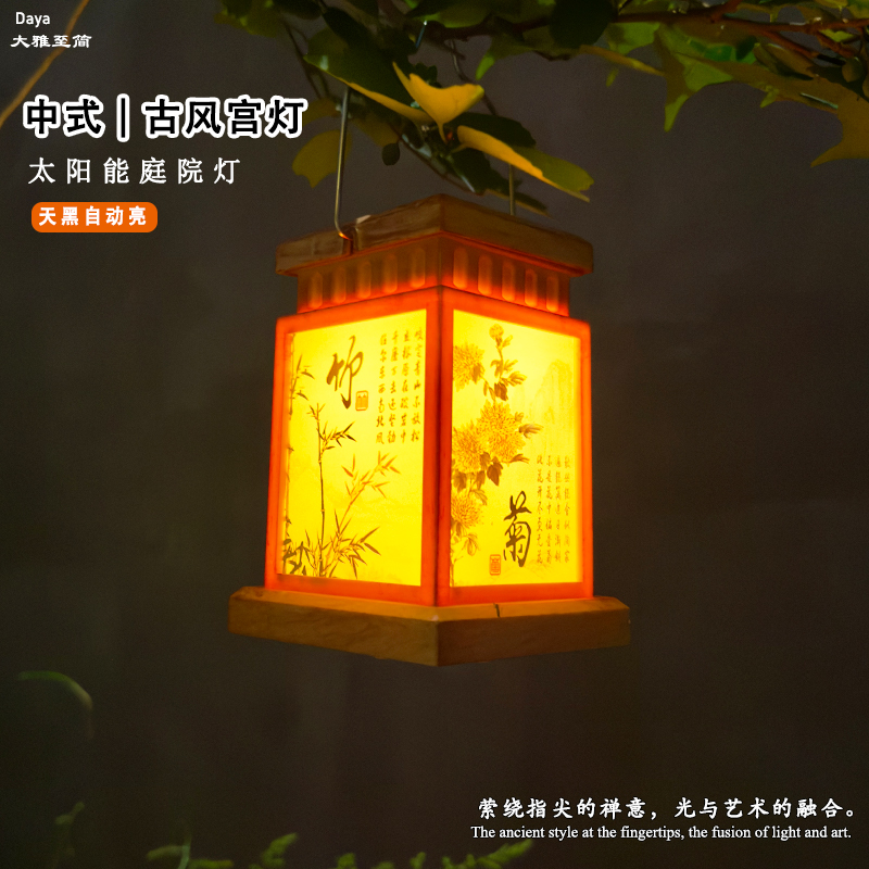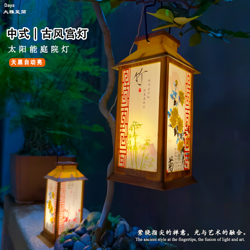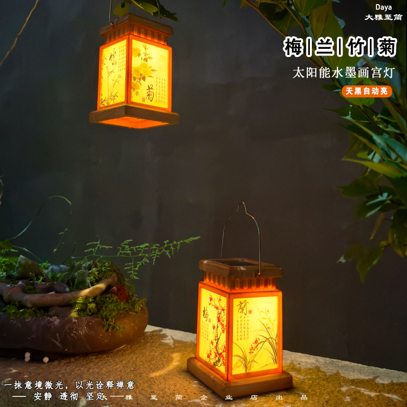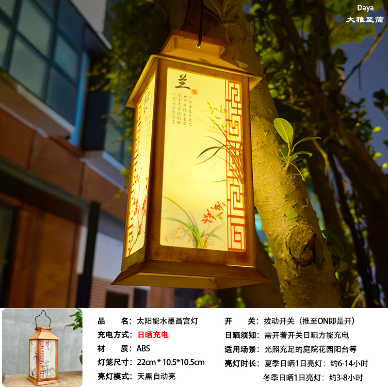 太阳能水墨画宫灯中式 饰景观户外复古氛围灯 庭院烛光灯花园别墅装