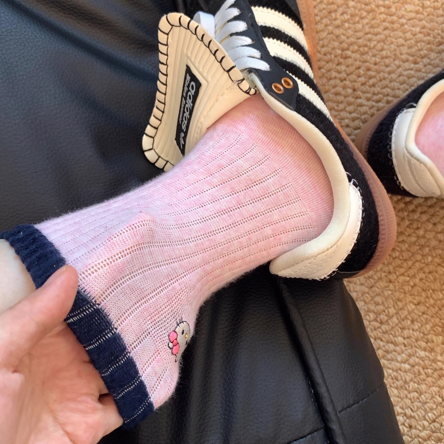 秋冬女袜2025新款 中筒袜女士袜子 粉色可爱少女卡通棉袜搭配小皮鞋