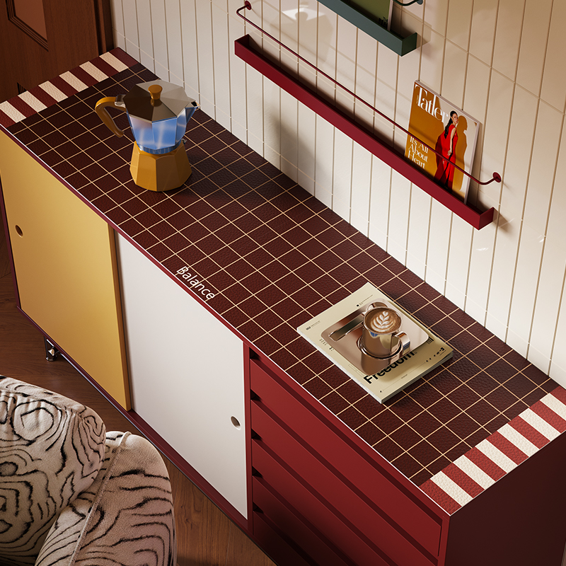 莫方格中古包豪斯格子玄关餐边柜垫皮革防水防油电视柜垫鞋 柜垫子