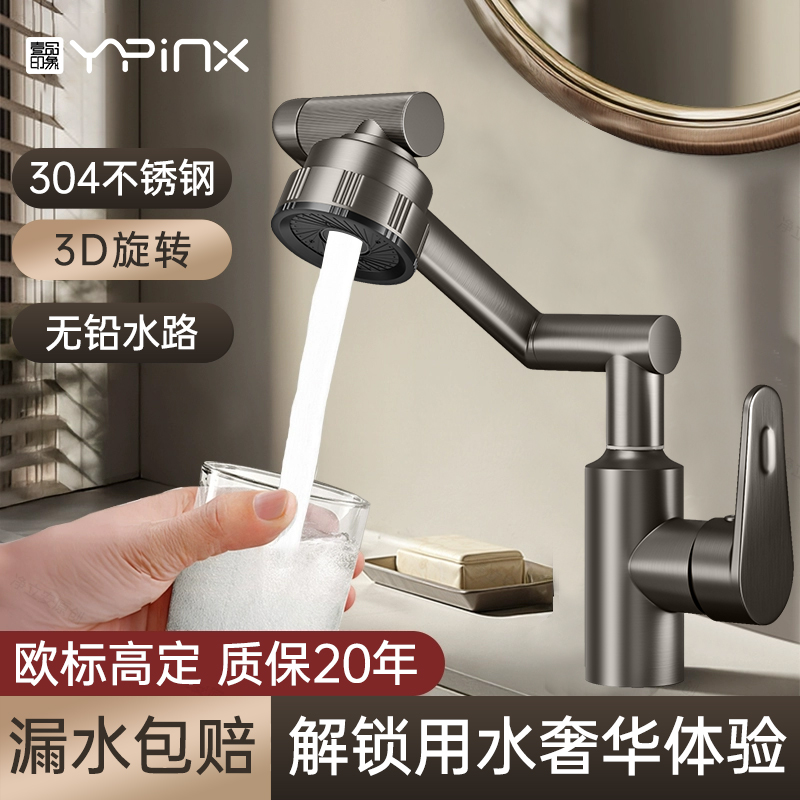 304不锈钢万向机械臂水龙头冷热面盆龙头多功能旋转卫生间洗脸盆