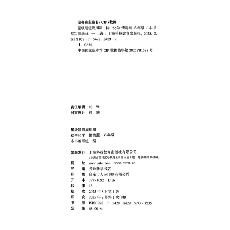 星级题组周周测初中化学情景题八年级全一册8年级上下册 社 每周一练掌握重难点知识清单梳理重点脉络双组训练上海科技教育出版
