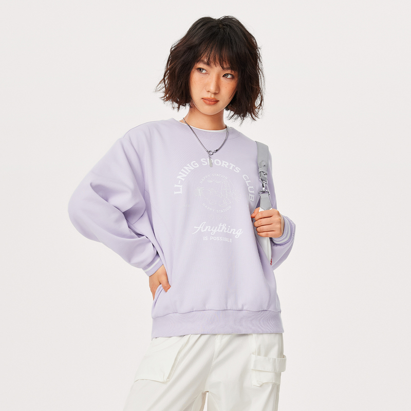 秋季 宽松百搭女款 套头上衣AWDU598 女运动卫衣运动套头衫 李宁春季