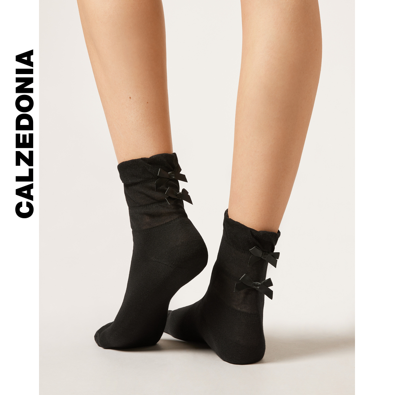 CALZEDONIA卡泽意袜25秋冬新女士甜美褶皱蝴蝶结短袜中筒袜DC0585