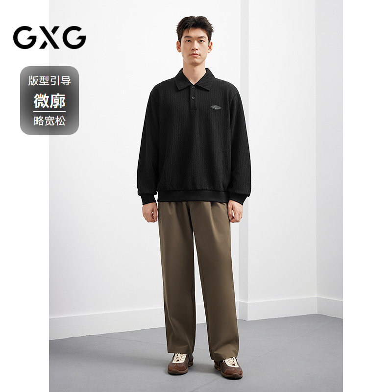 木纹肌理翻领长袖 GXG男装 卫衣休闲百搭男卫衣 新品 25年秋季