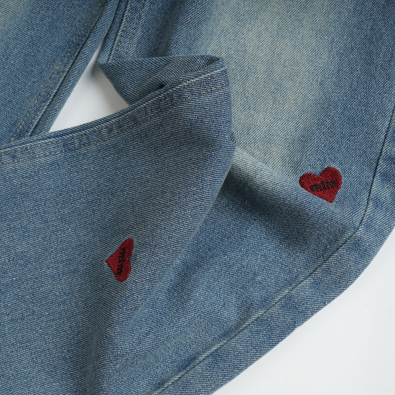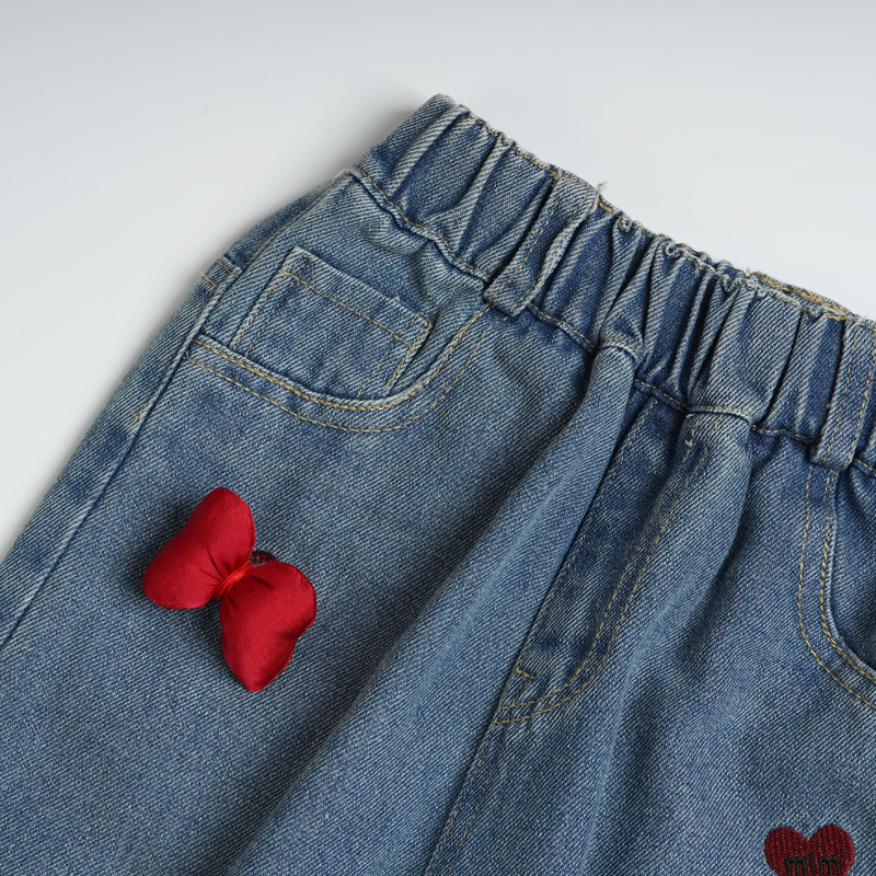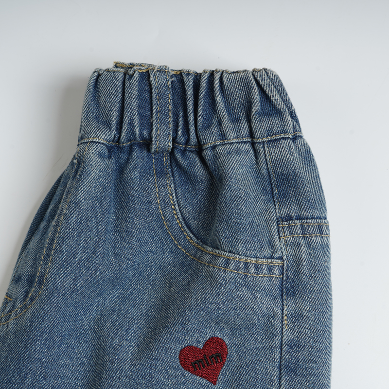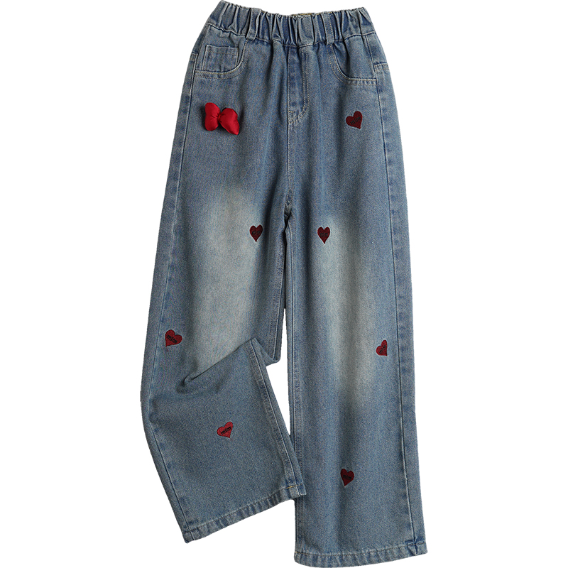 春秋装 外穿冬厚款 红色爱心长裤 中大童洋气直筒裤 阔腿裤 女童牛仔裤