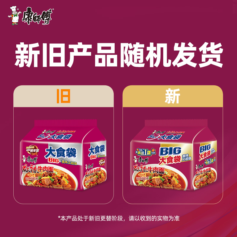 康师傅方便面大食袋5袋装 大面饼夜宵速食宿舍整箱 红烧牛肉面袋装