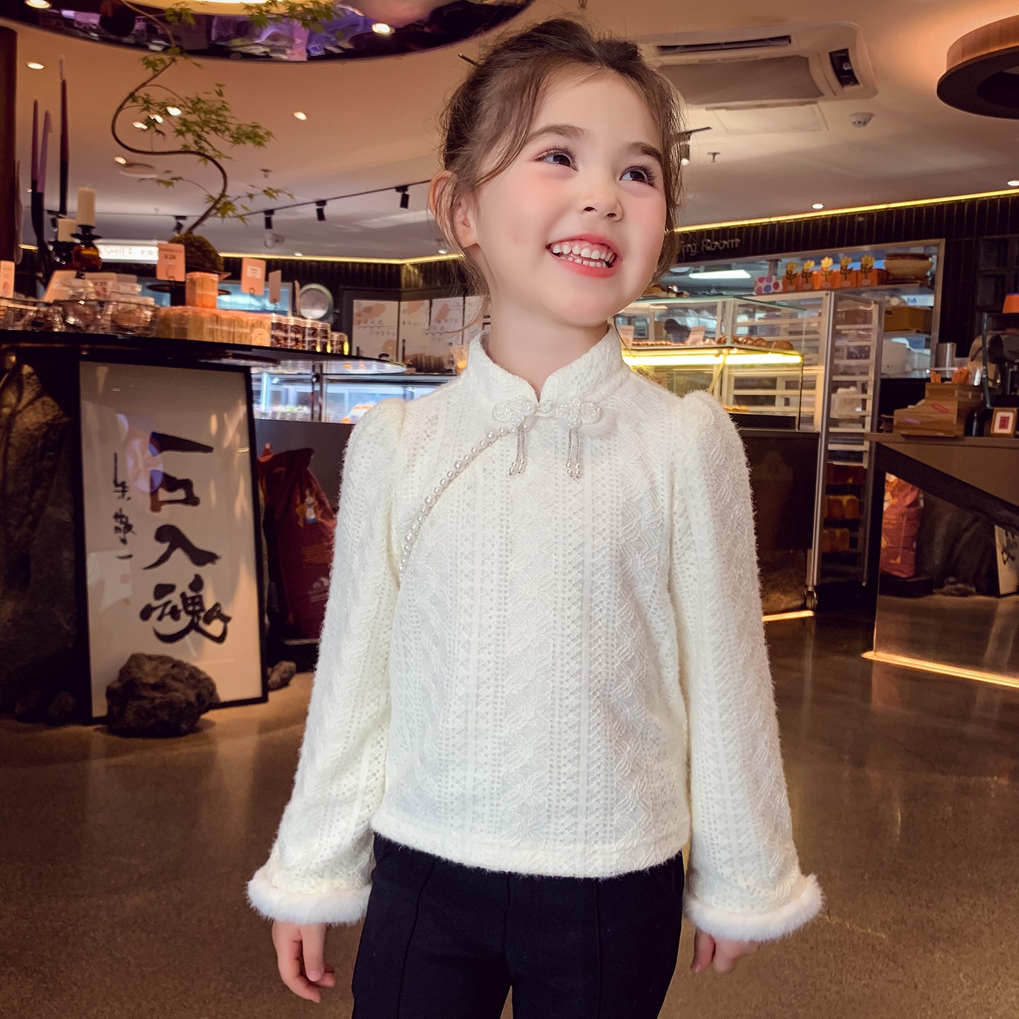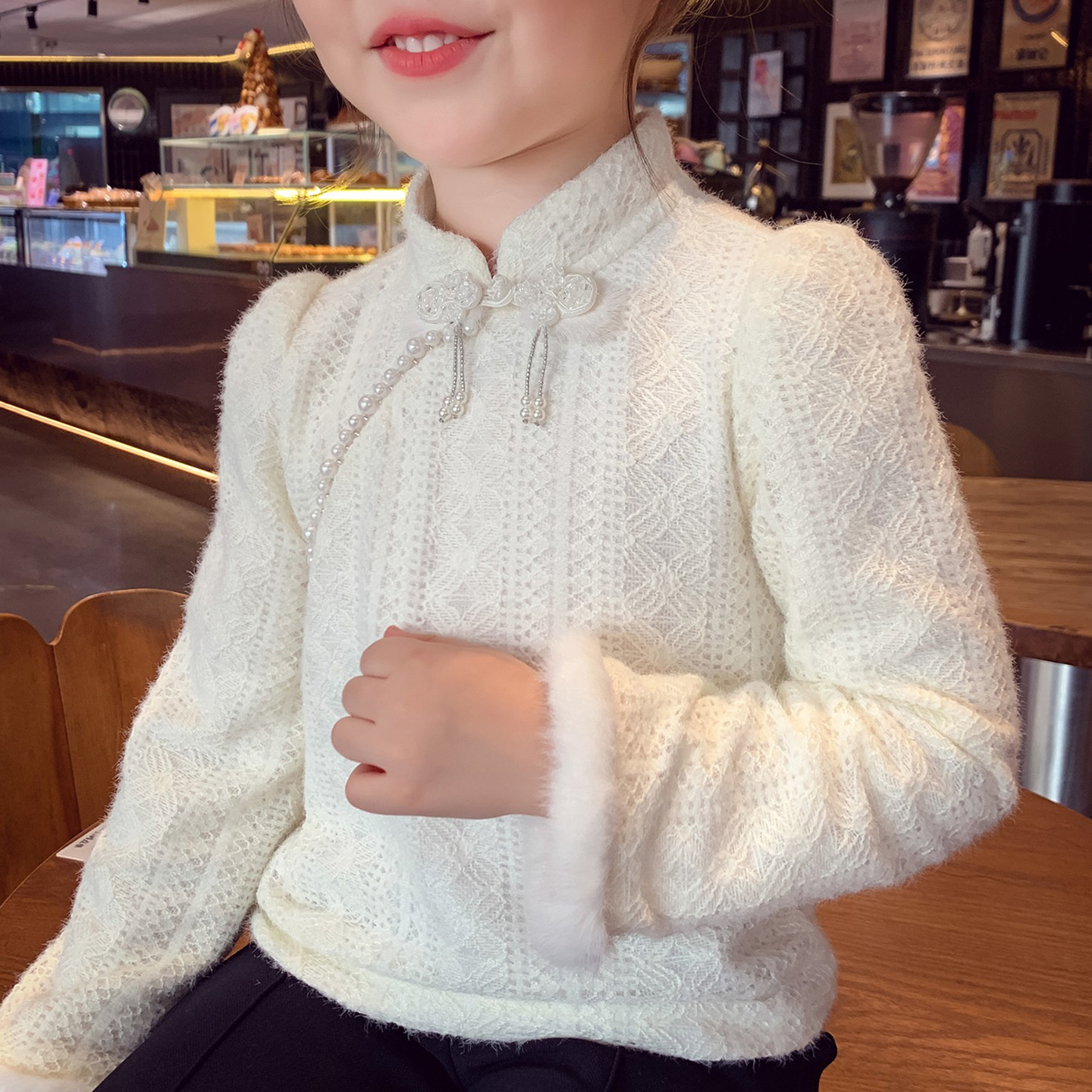 上衣女孩网红长袖 女童蕾丝打底衫 儿童立领新中式 2025新款 内搭 秋装