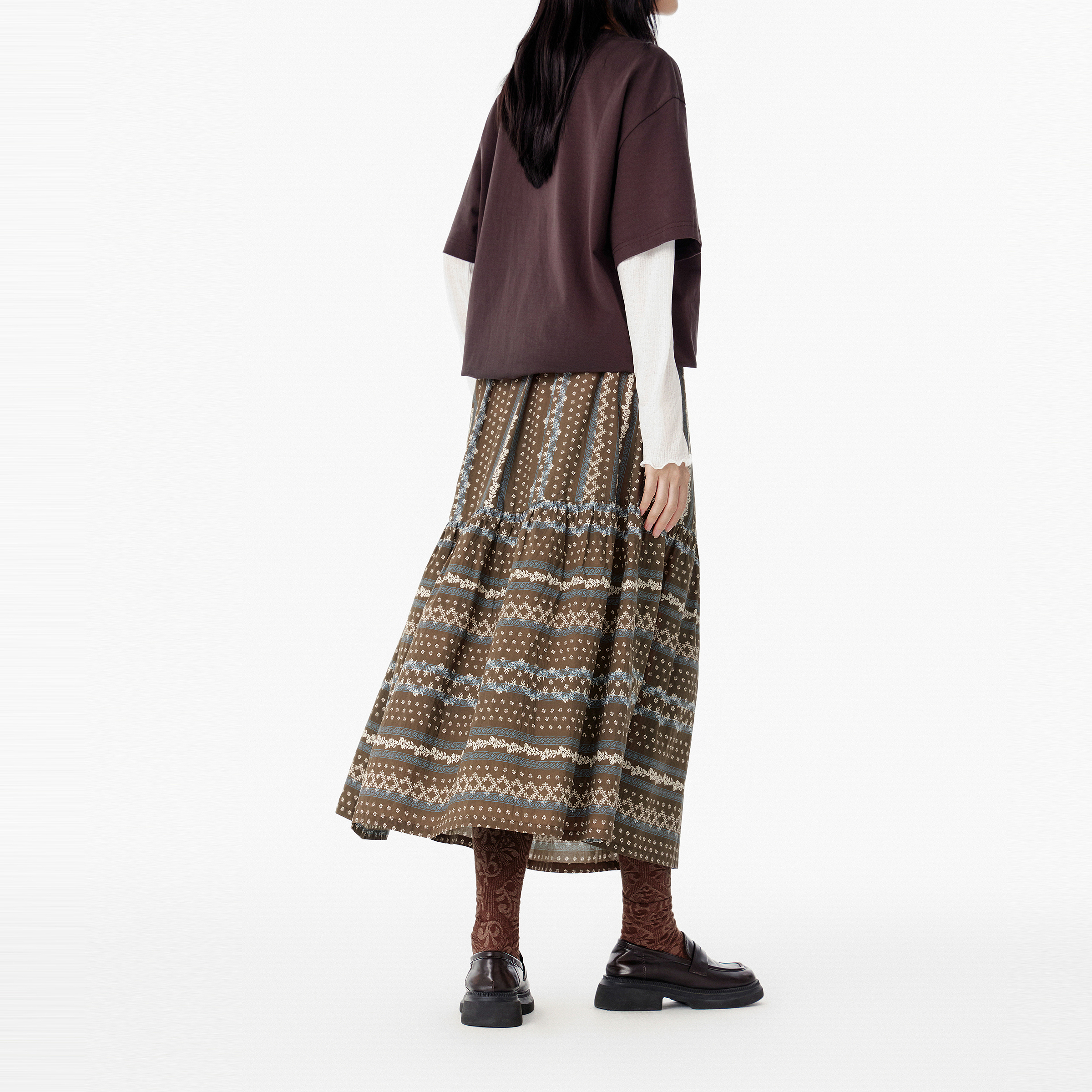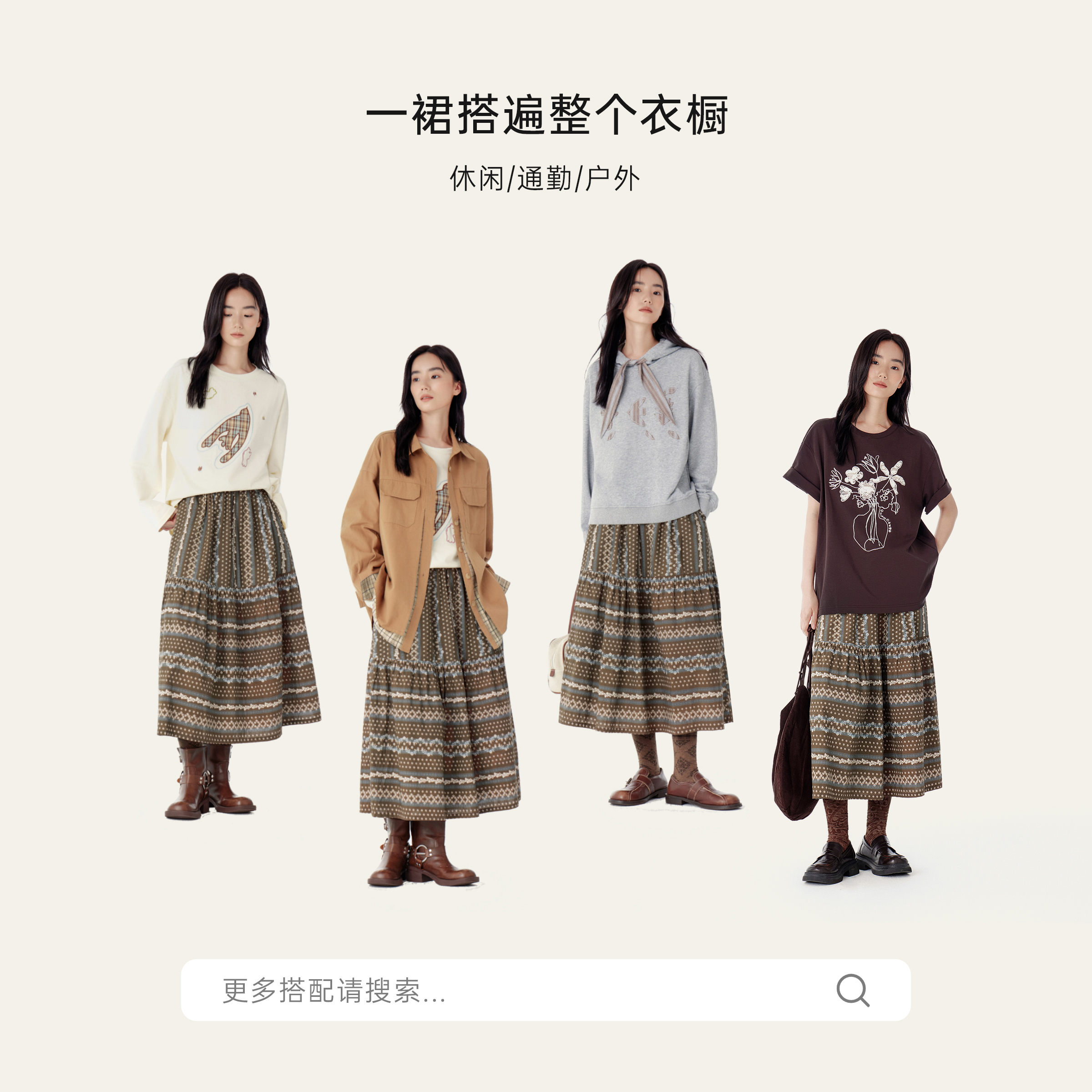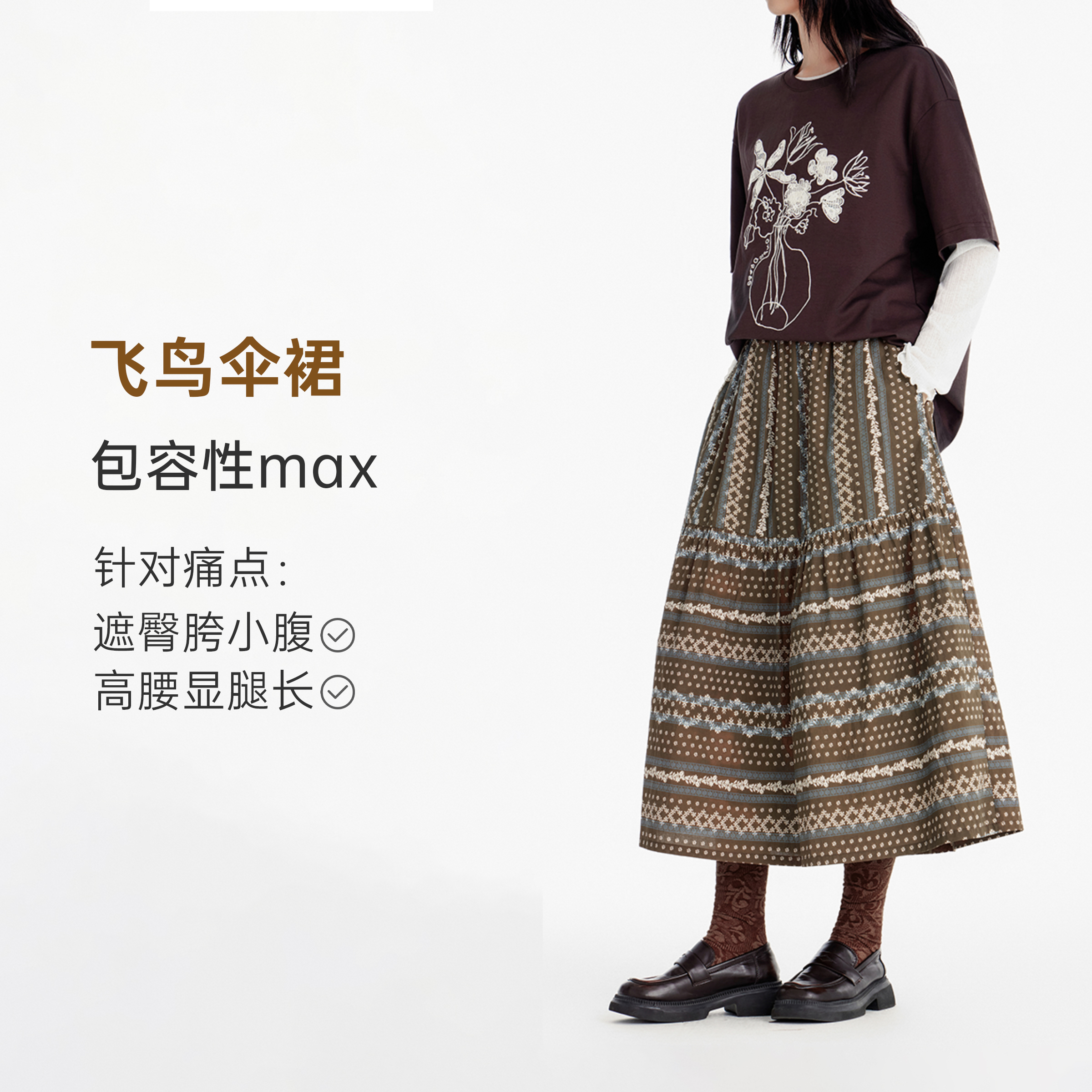 飞鸟和新酒松紧腰半身裙2025秋新款 腰裙伞裙 美拉德穿搭风显瘦A版