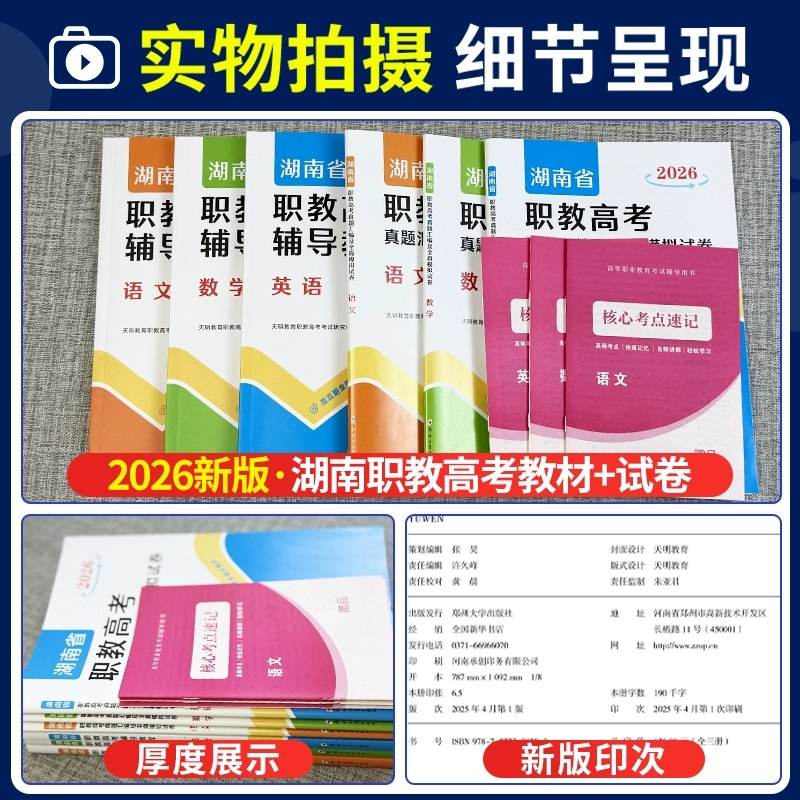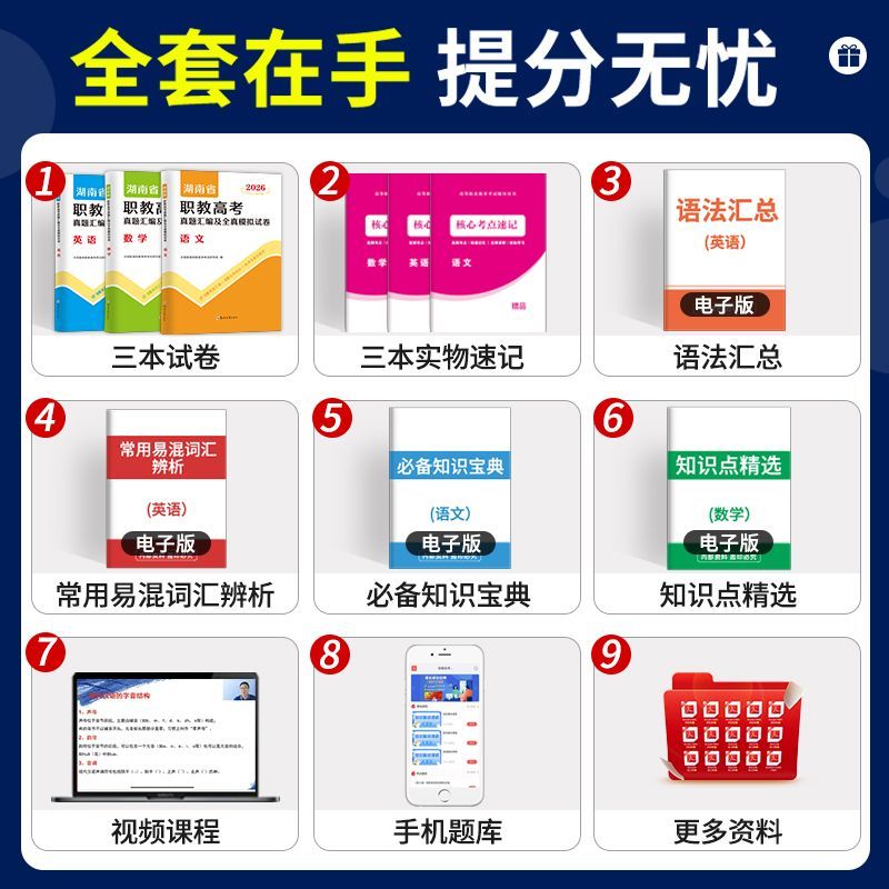 2026年湖南职教高考复习资料教程历年真题试卷模拟语数英职业技能教材高职单招考试职业适应性测试春季 小高考中职对口招学业水平