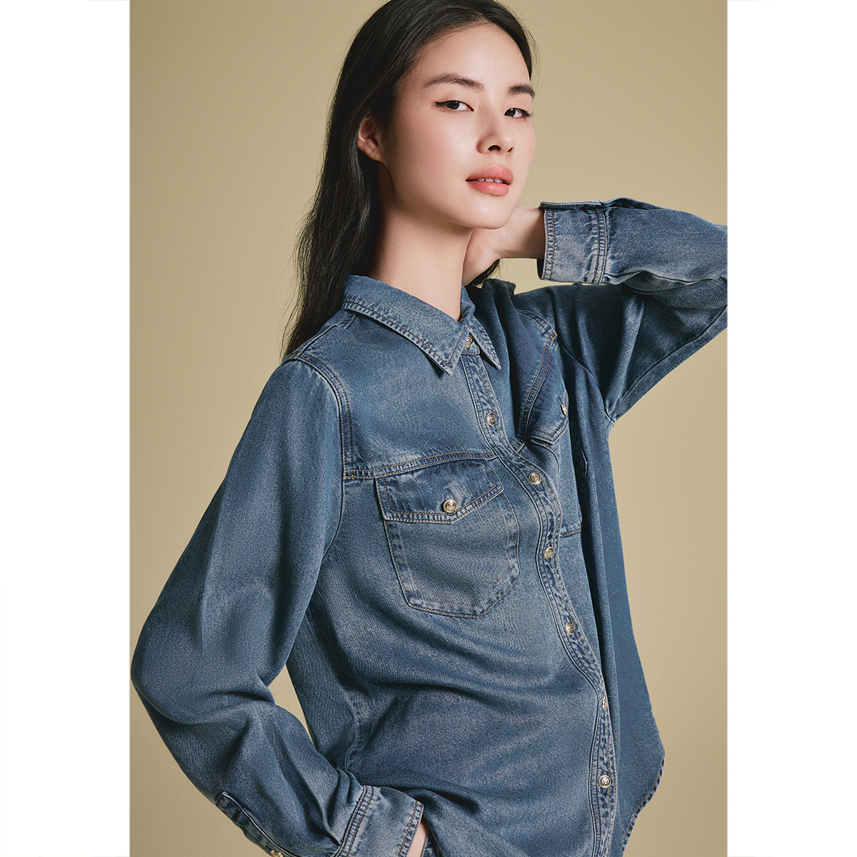 牛仔衬衣男18045803 男洗水单口袋宽松长袖 设计师款 佐丹奴牛仔衬衫