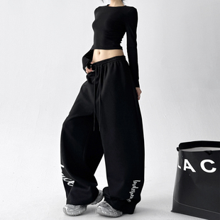 街舞韩系穿搭chic高个子运动裤 超火秋装 新款 女2025秋季 黑色阔腿裤