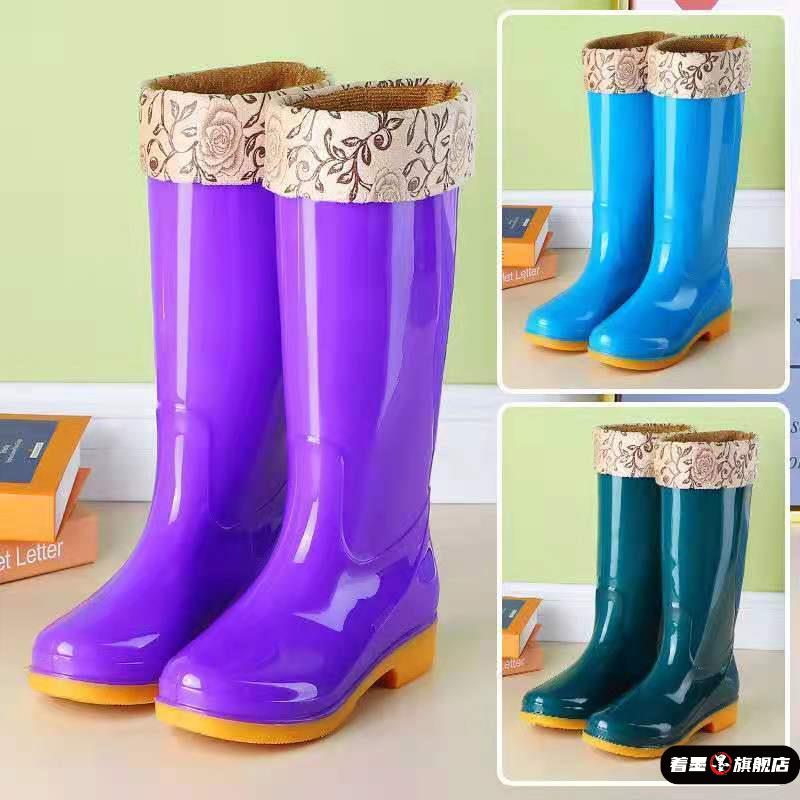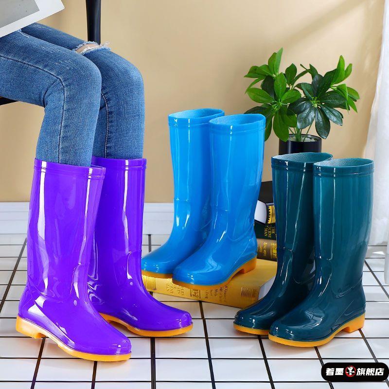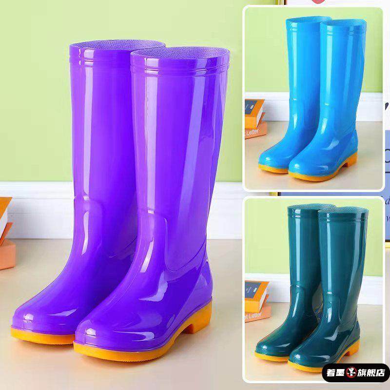 可爱水靴子厨房成人 高帮防滑牛筋底雨靴劳保胶鞋 女士雨鞋 高筒水鞋