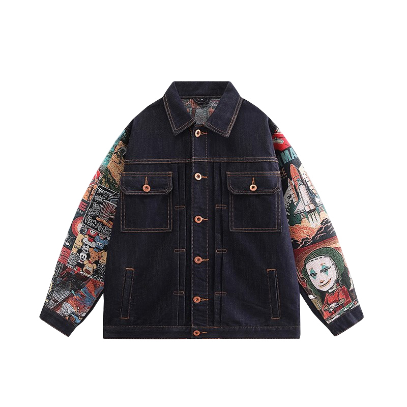 夹克上衣 潮牌美式 李一桐同款 INXXAPYD复古做旧牛仔外套男女同款