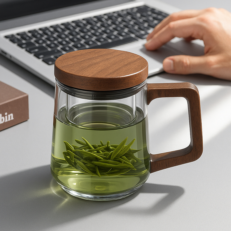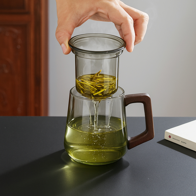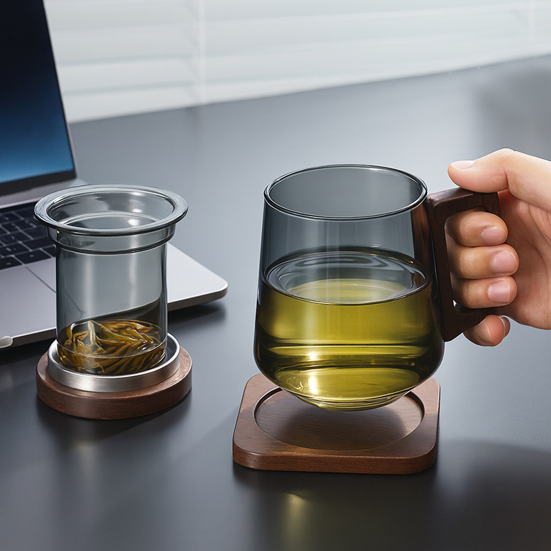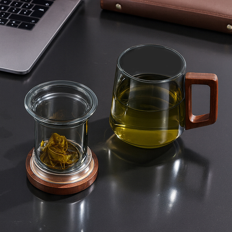 玻璃杯套装 家用客厅耐高温泡绿茶水杯大容量待客喝水杯子木柄茶杯