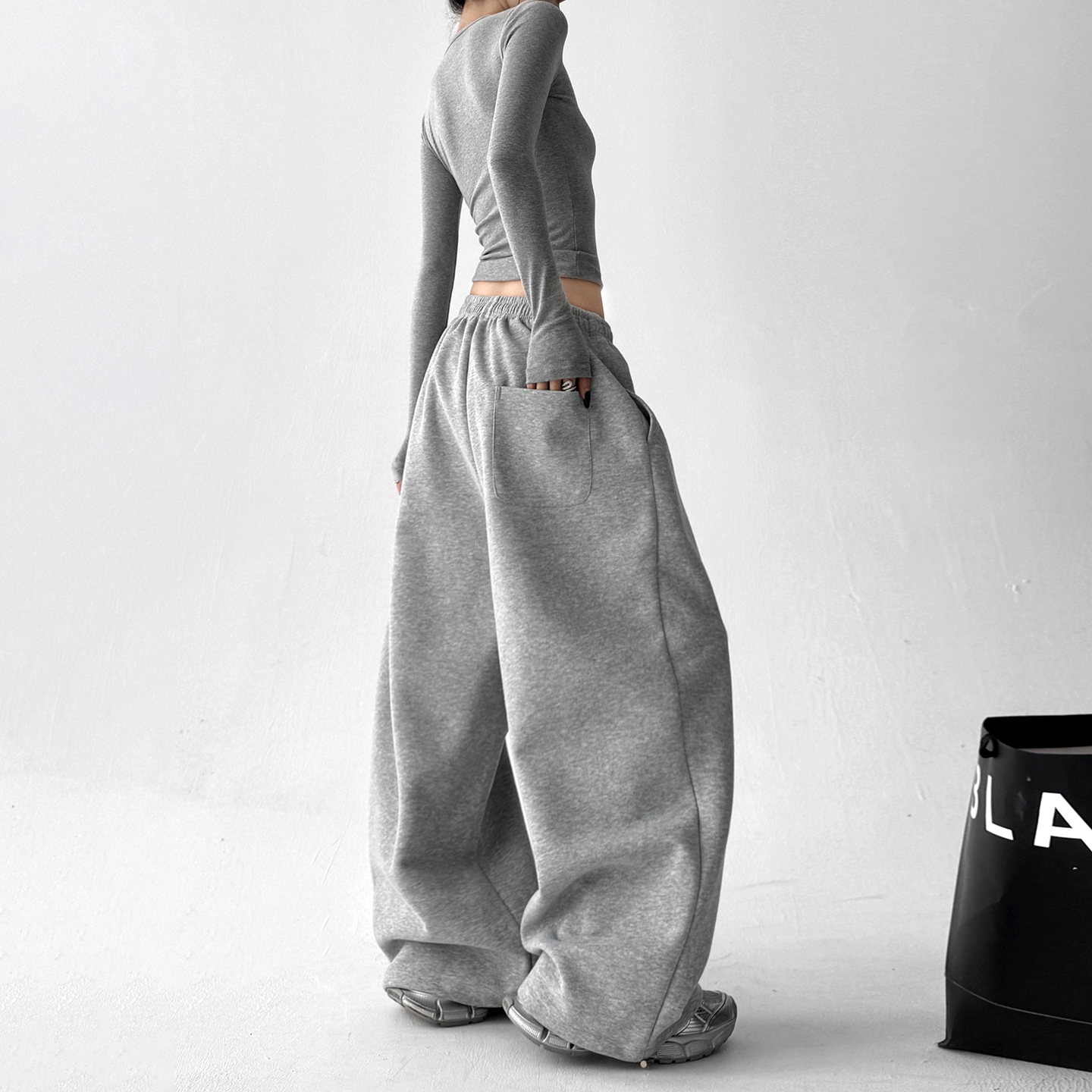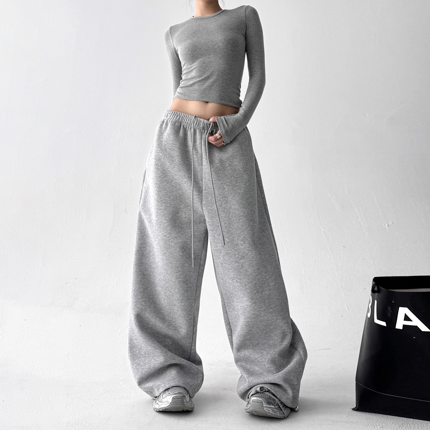 秋冬灰色香蕉裤 高腰垂感休闲加绒直筒卫裤 女春秋2025年新款 阔腿裤