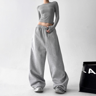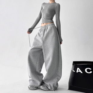 休闲秋冬阔腿裤 高腰直筒宽松香蕉卫裤 子 女春秋2025新款 灰色运动裤
