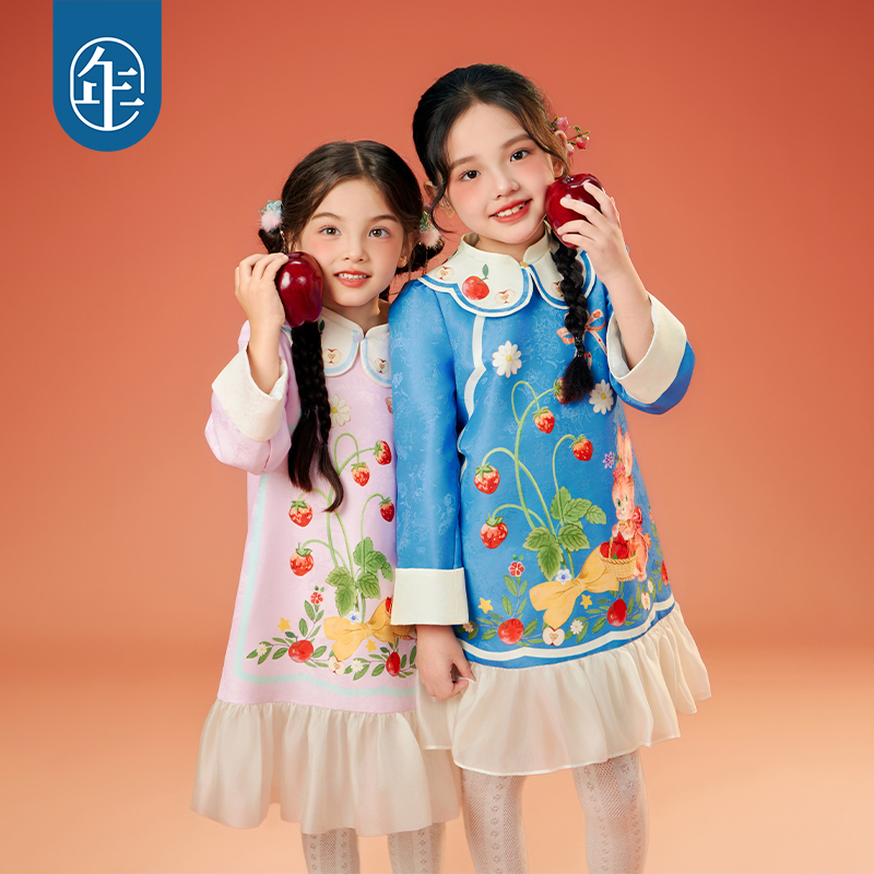 国风长袖 年衣童装 中式 新款 短裙儿童礼服演出服 女童旗袍连衣裙秋季