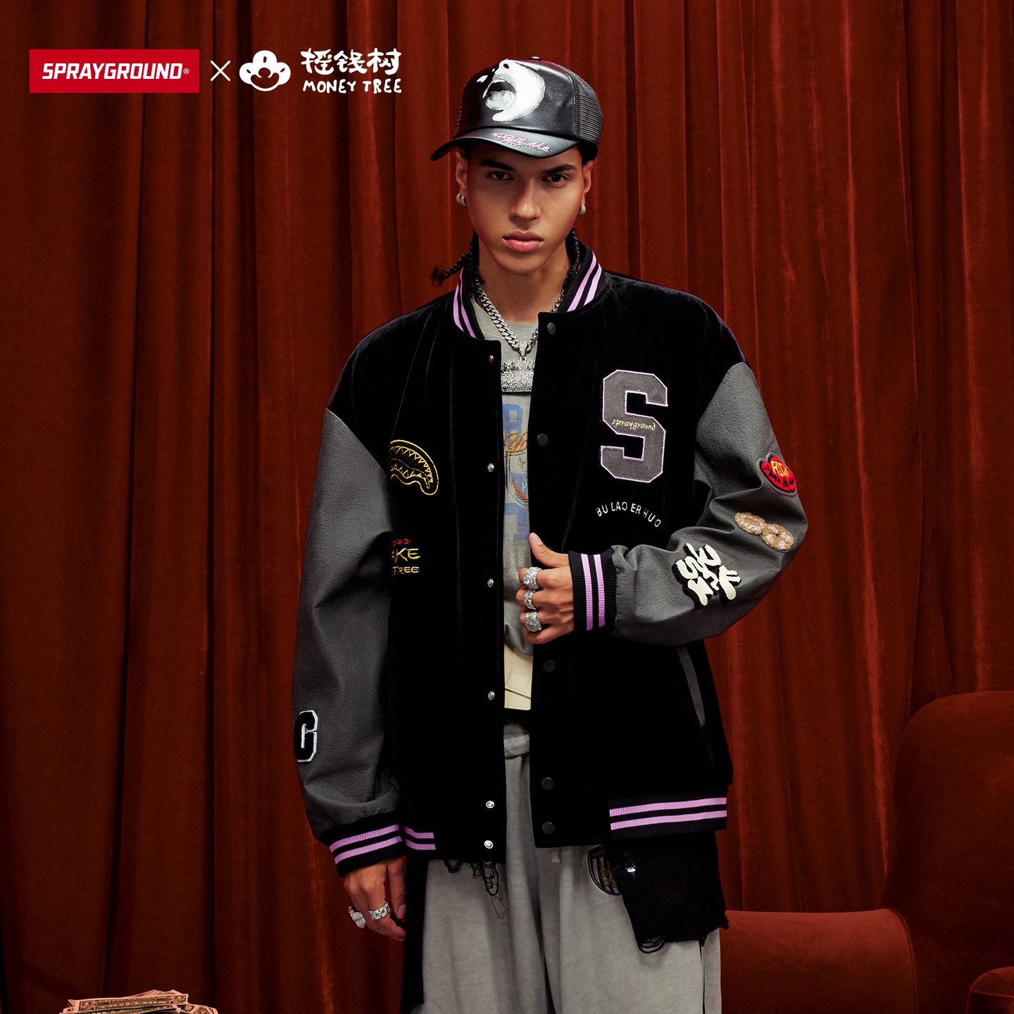 复古运动夹克贴贴撞色皮衣女 秋季 BJHG不计后果美式 棒球服外套男款
