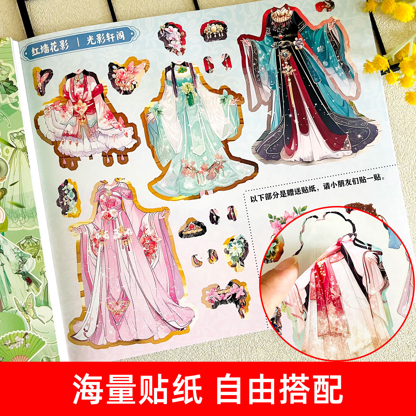 9岁益智玩具卡通少女可爱美丽公手账换装 饰素材贴纸本子3到6岁启蒙早教绘本 少女古风换装 本女孩手杖装 贴纸本儿童生日礼物3