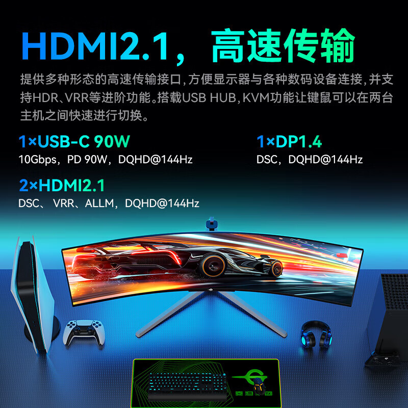 泰坦军团49英寸曲面带鱼屏显示器5K144Hz电脑游戏屏幕G49E9R2