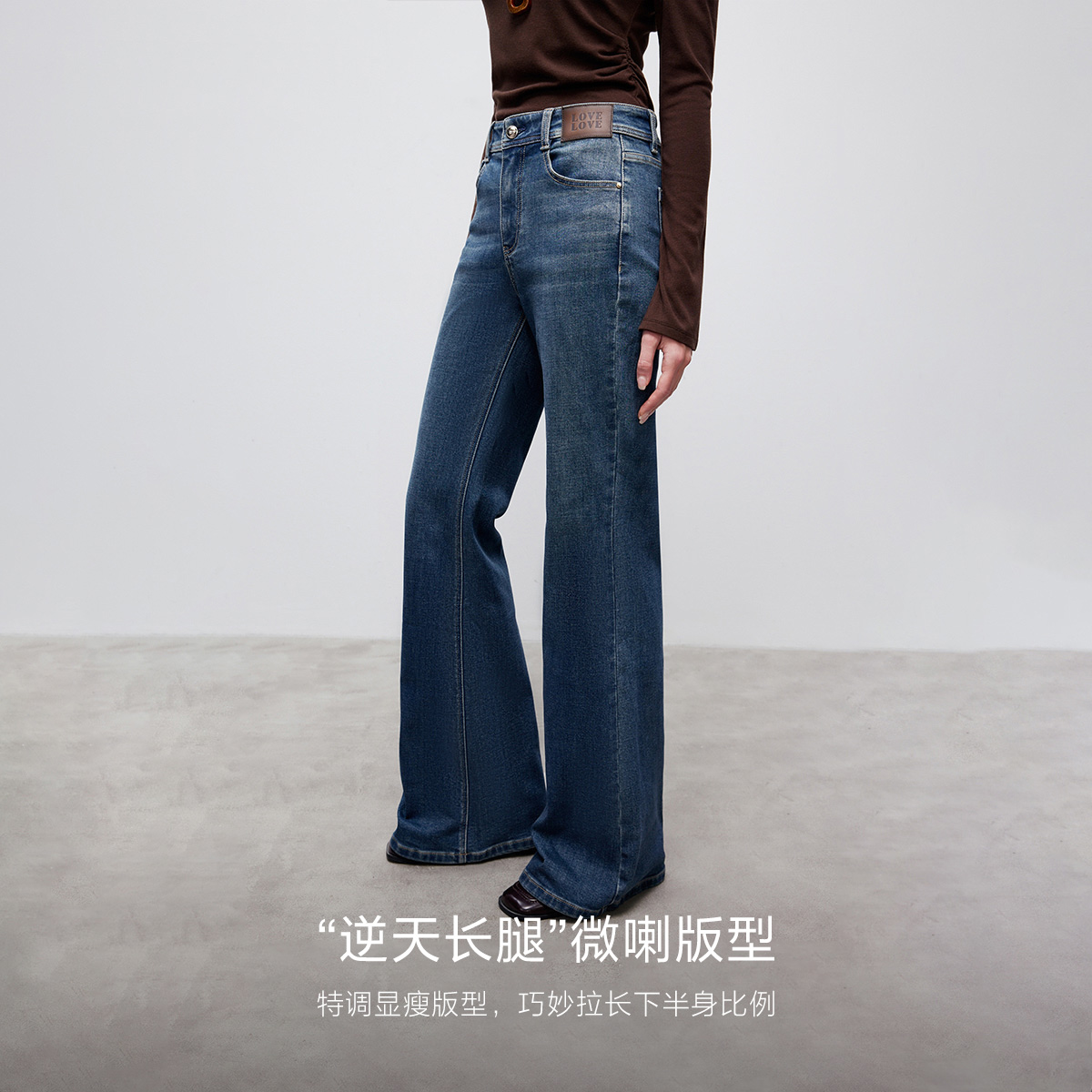 森柔牛仔喇叭裤 小黑牛 2025新款 女高腰开叉长裤 森马微喇牛仔裤