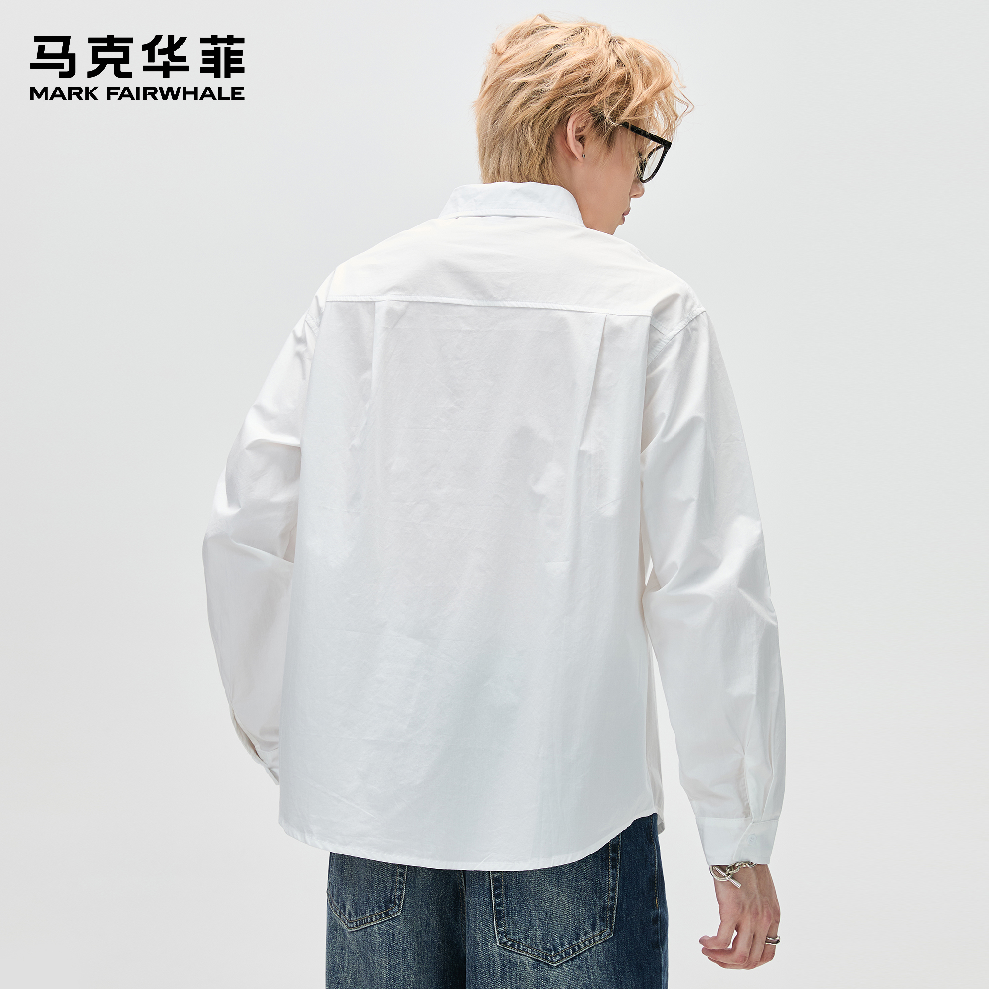 衬衫 长袖 男潮牌cleanfit白色学院风口袋宽松外套 新款 马克华菲秋季