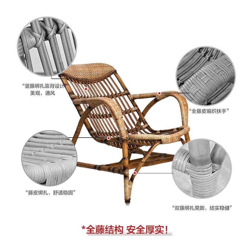 长青藤天然真藤躺椅可坐可躺藤编老人午休办公室阳台藤椅子靠背椅