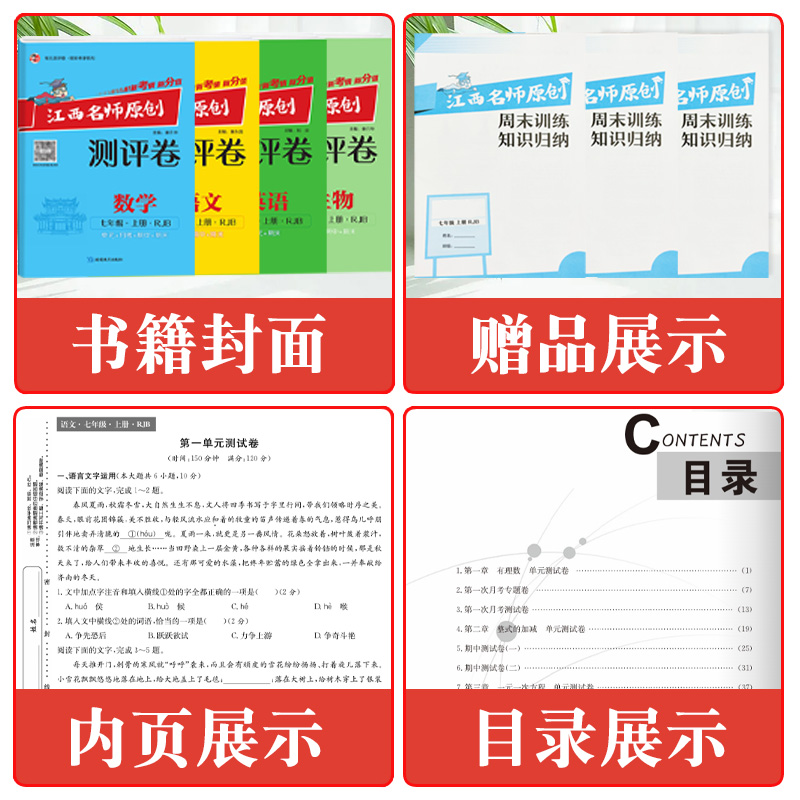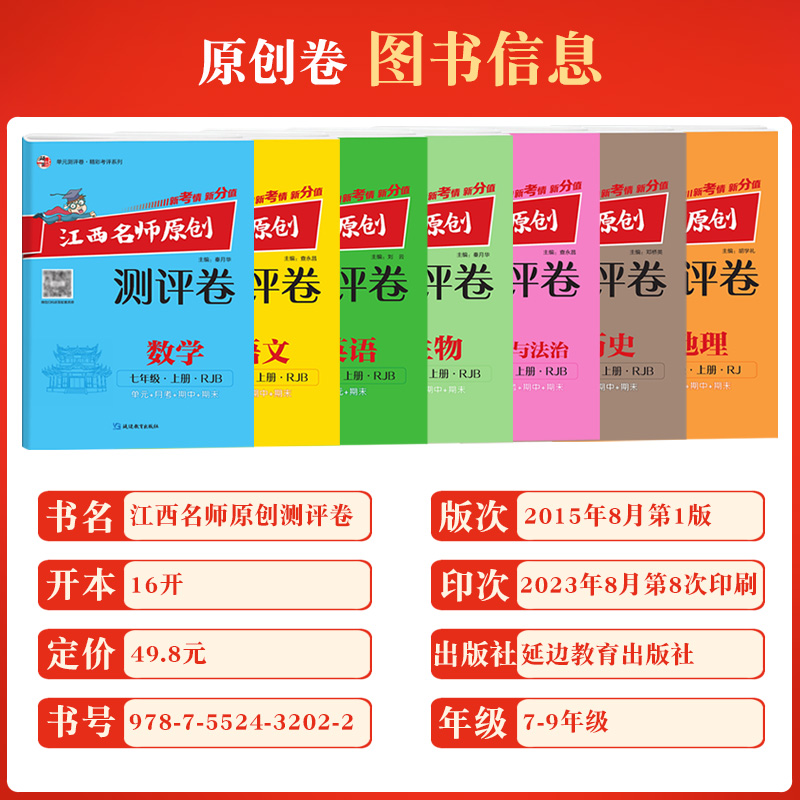 江西名师原创测评卷初中七八九年级上册语文数学英语物理化学政治历史地理生物期中单元 中学教辅资料 期末中考模拟专题测试卷人教版