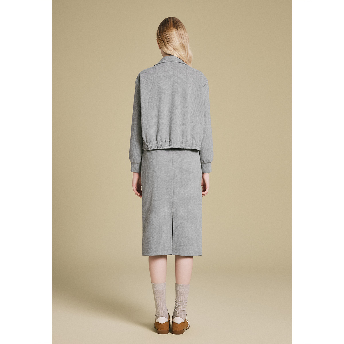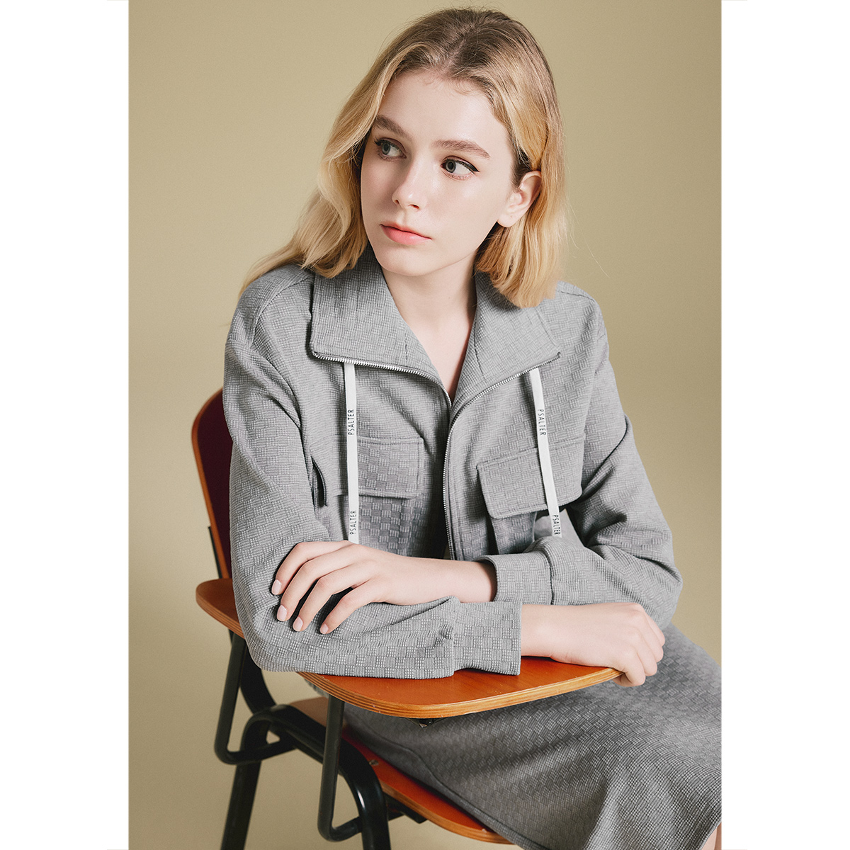 诗篇专选格雷灰色系棋盘格肌理宽松廓形针织短外套2025春季 新款