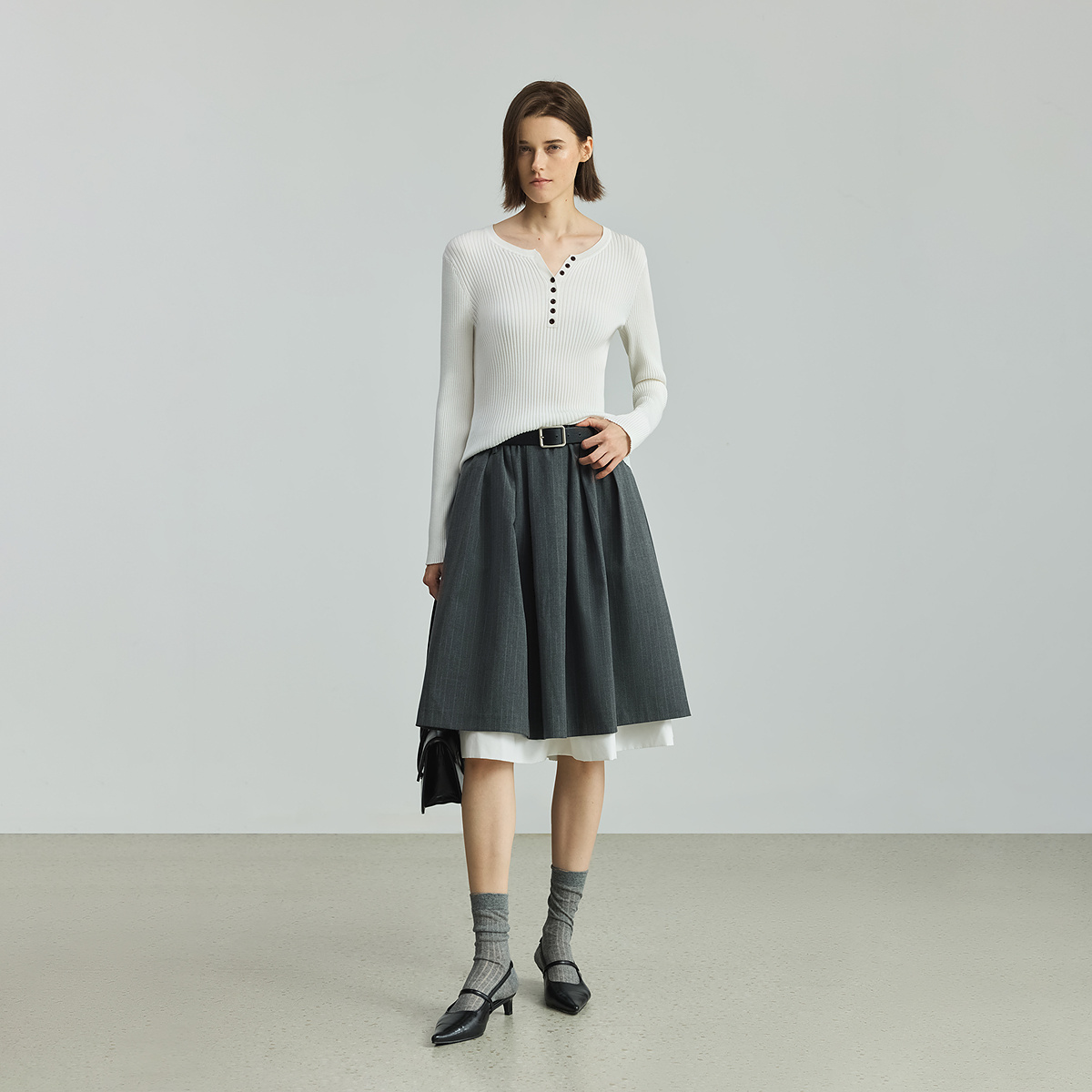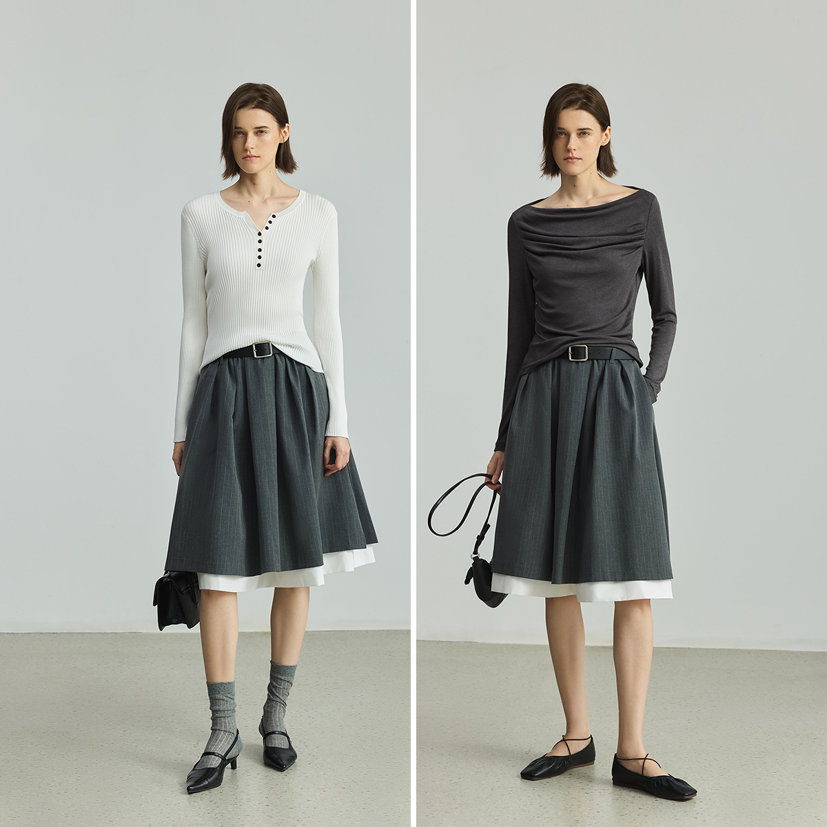 裙 高腰显瘦遮胯A字西装 8821 重工双压褶百褶半身裙春秋女中长款