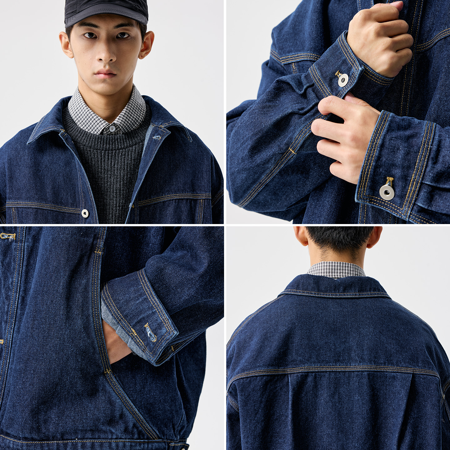 新款 森马夹克男2024秋季 复古牛仔外套宽松潮流 商场同款 森柔牛仔